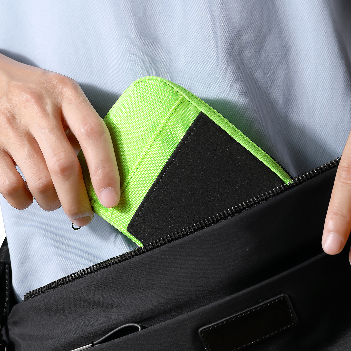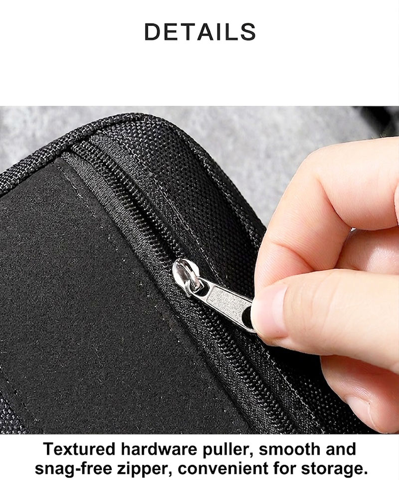 3. Durable Material and Smooth Access The pouch appears to use Oxford cloth with a neat stitched finish, giving it a durable and structured feel for regular use. The zipper opening is wide enough for convenient access, and the puller is designed for smooth opening and closing. This kind of compact build is useful for customers who want a simple organizer that is easy to manage without taking up much space.