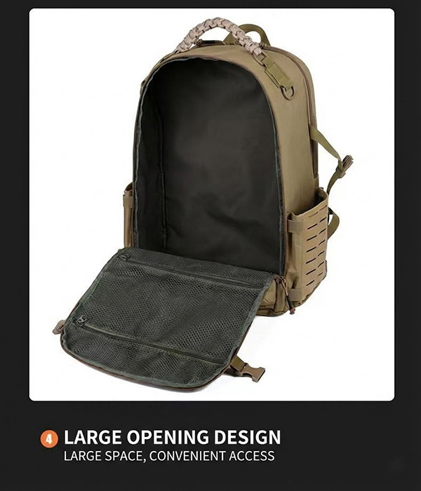 The product images show a large-opening main compartment, which makes access easier when packing or retrieving items. This layout is practical for users who want a more convenient way to organize personal gear, outdoor essentials, or daily tech items.
