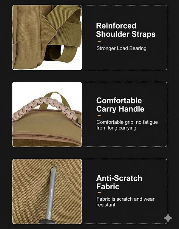 - Reinforced shoulder straps and a top handle for flexible carrying.