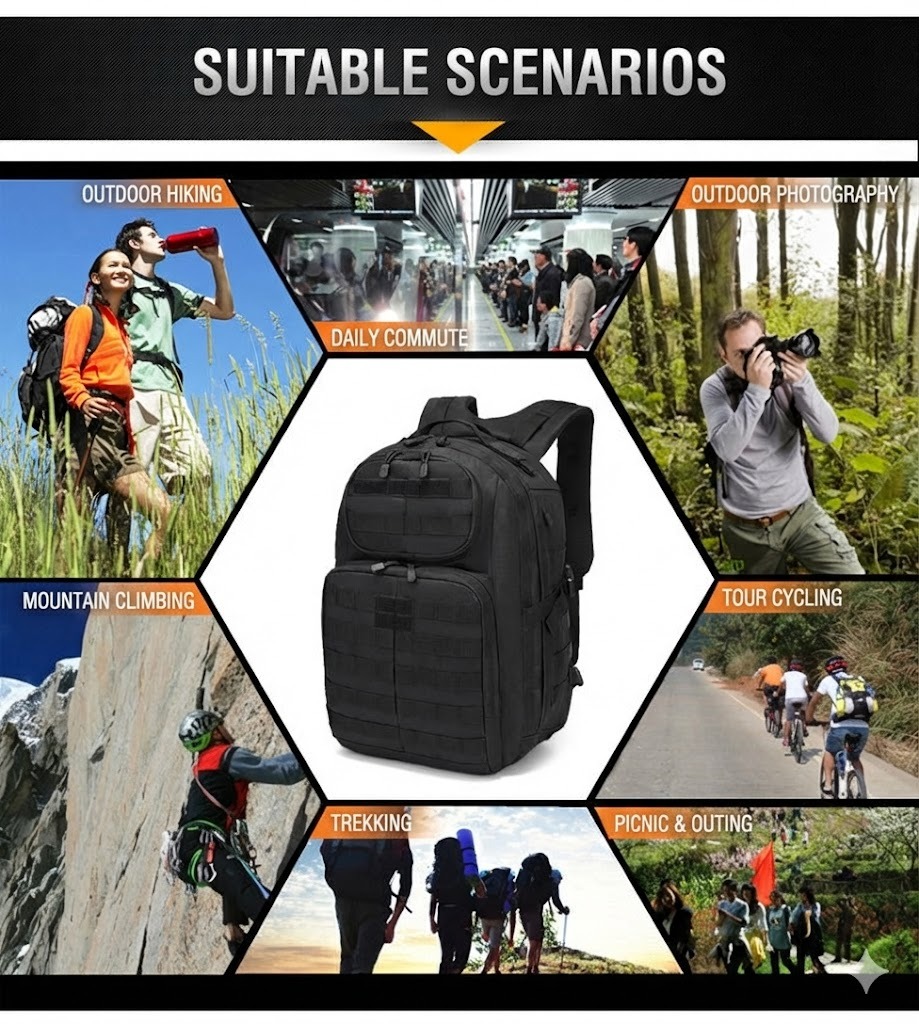 - Suitable for daily use, outdoor trips, light trekking, and tactical styling