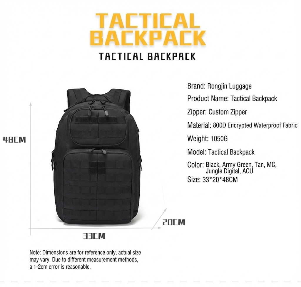 I like the tactical look because it feels clean and practical without being too bulky. The zippers work smoothly and the inner layout is easy to use.