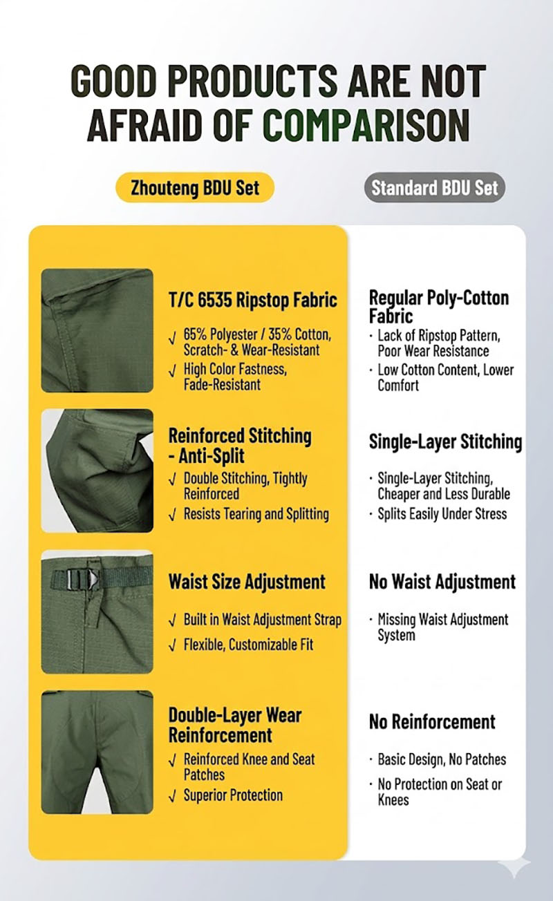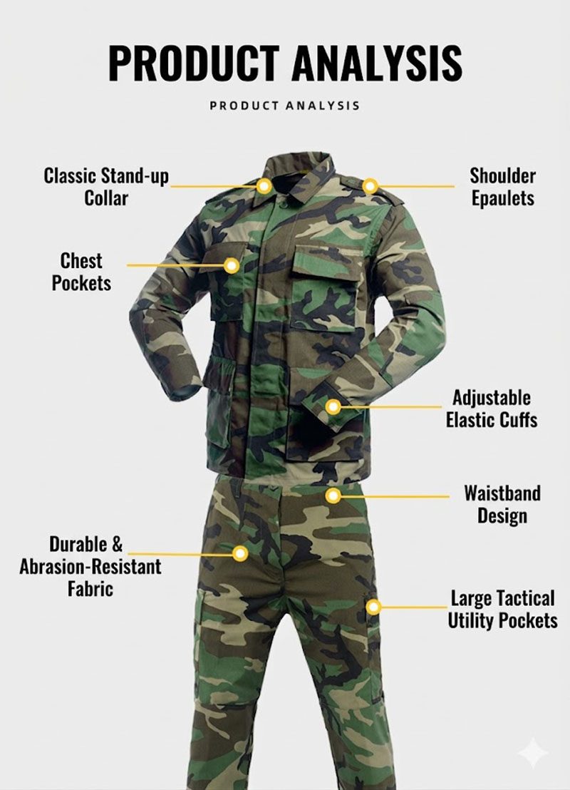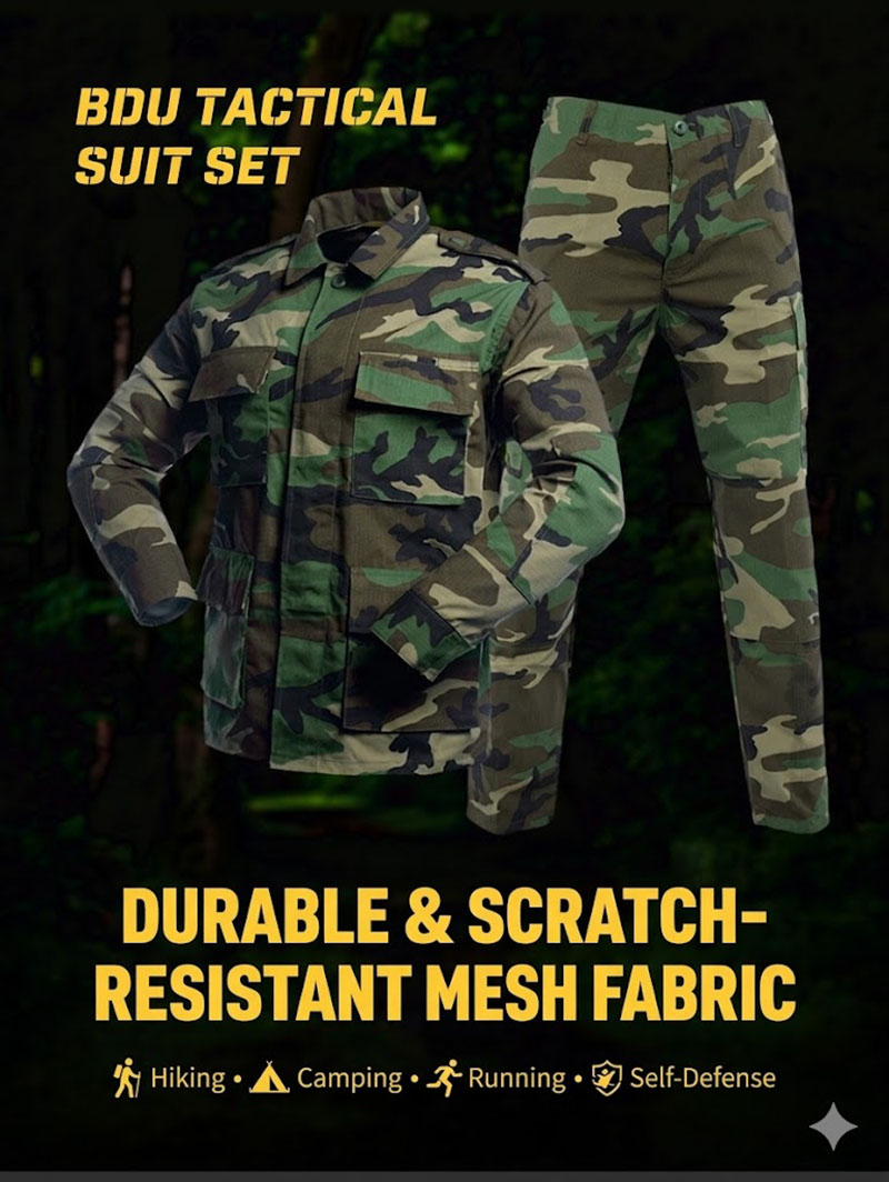 • Two-piece tactical BDU uniform set with jacket and pants