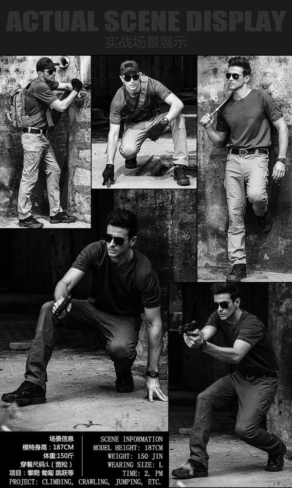 IX04 tactical cargo pants combine a slim outdoor silhouette with practical utility details for travel, hiking, training, and everyday wear. With their articulated leg shape, multi-pocket layout, elastic waistband comfort, and lightweight technical-fabric look, this style offers a clean tactical appearance that stays easy to wear in active daily use.