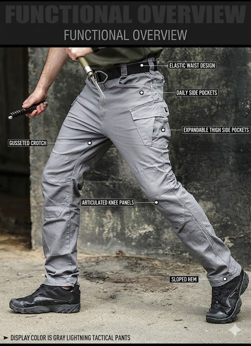 IX04 Tactical Outdoor Cargo Pants – Slim-Fit Quick-Dry Utility Trousers with Elastic Waistband and Multi-Pocket Design