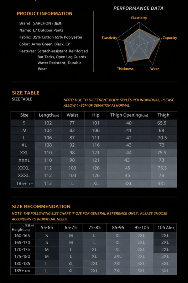 The IX14 tactical cargo pants are built for outdoor movement, daily wear, and utility-focused styling. With a water-repellent surface, abrasion-resistant presentation, articulated knee construction, and multiple functional pockets, they offer a balanced mix of rugged performance, mobility, and clean tactical design.
