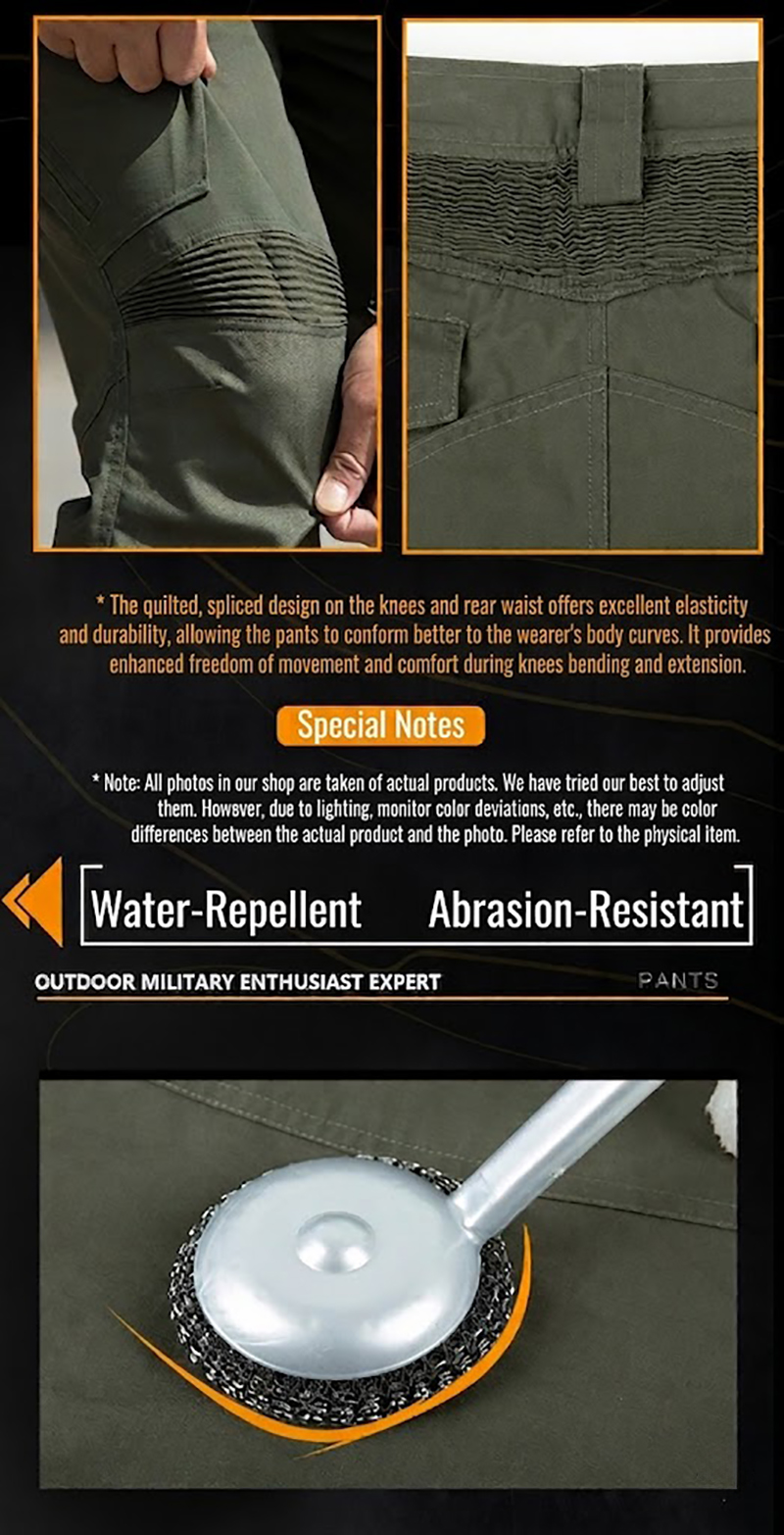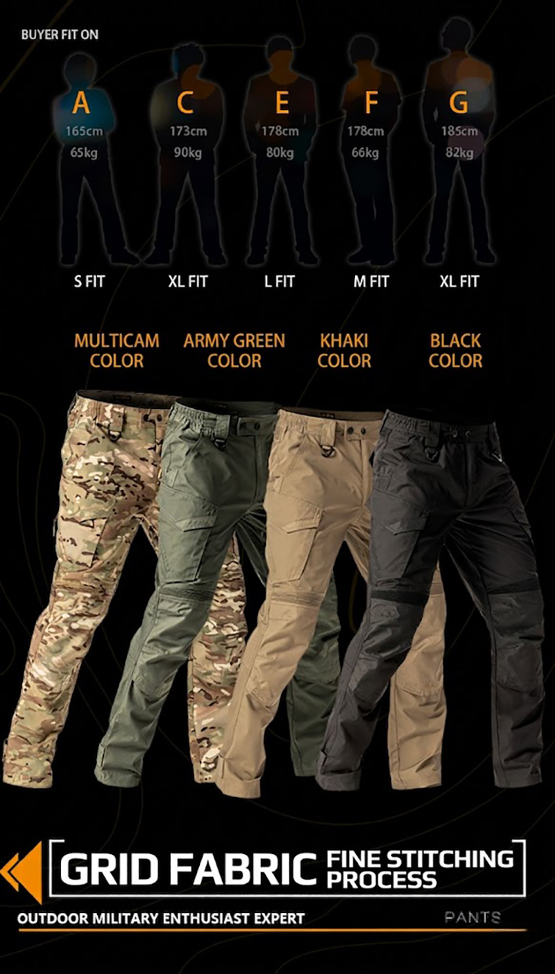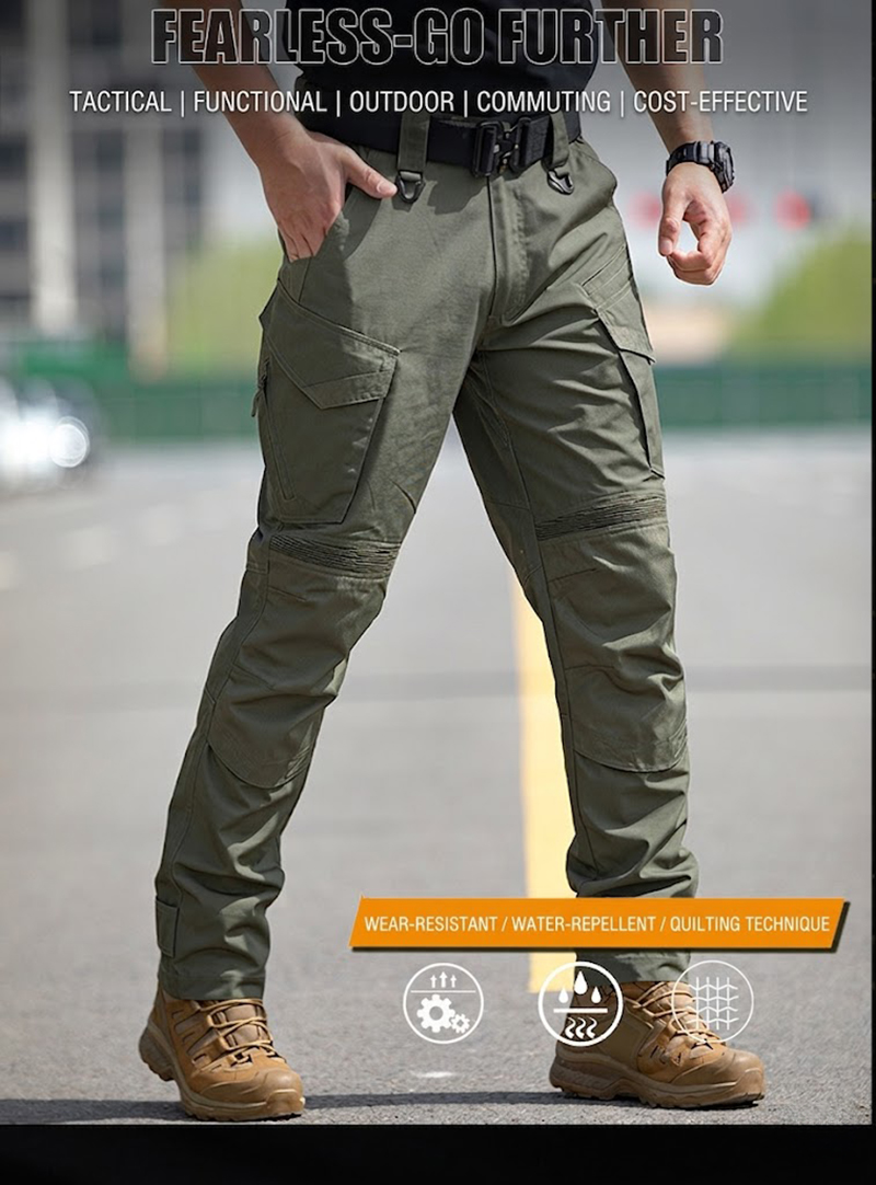 IX15 tactical cargo pants combine a clean outdoor-ready silhouette with practical utility details for everyday training, travel, and field-style wear. The design features multiple pockets, articulated knee construction, durable grid-texture fabric, and a water-repellent finish for a confident balance of comfort, function, and rugged style.