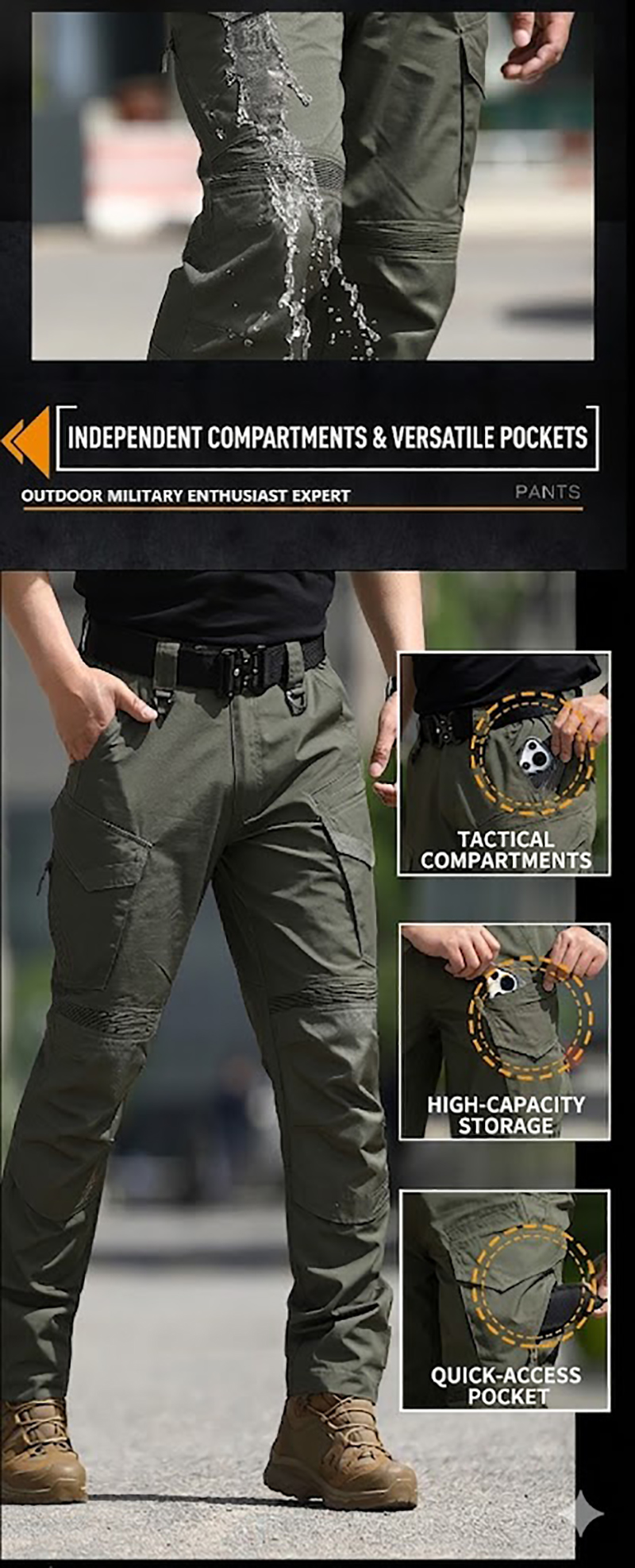 These pants match boots and tactical tops really well. The knee shape, pocket layout, and finish make them feel more premium than I expected for this style.