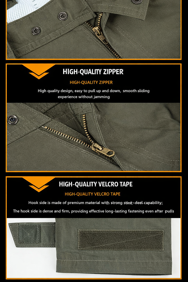 Close-up detail views emphasize neat stitching, hardware, and finishing touches such as zipper construction and hook-and-loop elements. These details give the product a more refined, dependable look for customers who value both appearance and everyday usability.