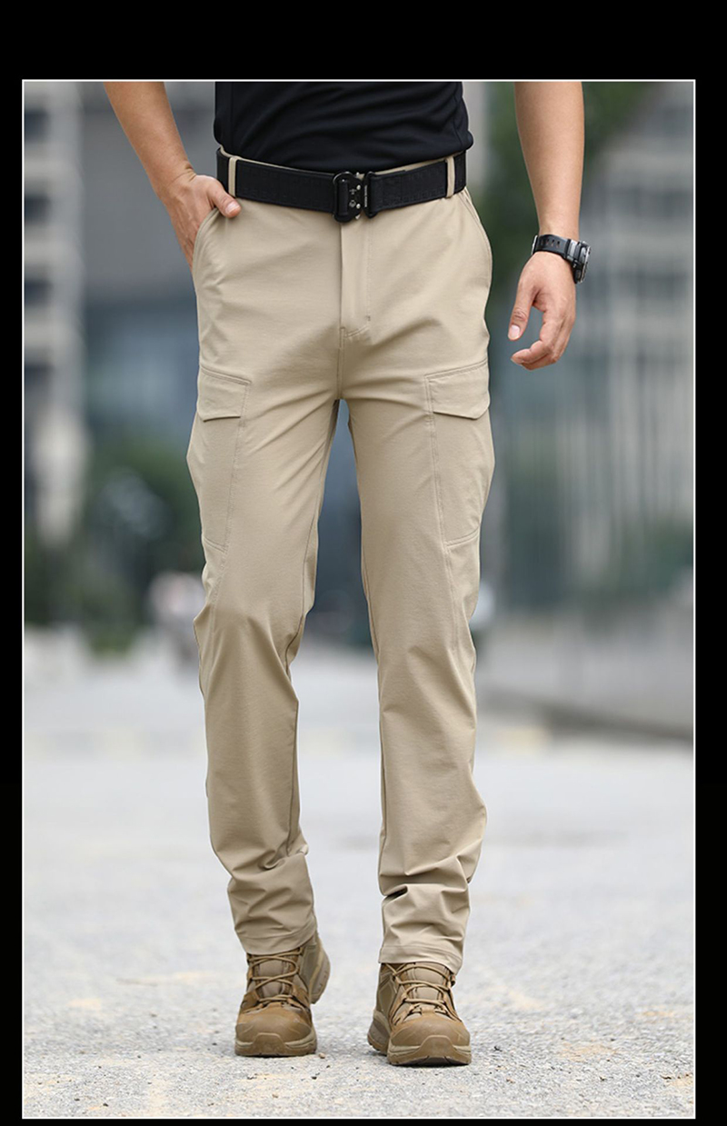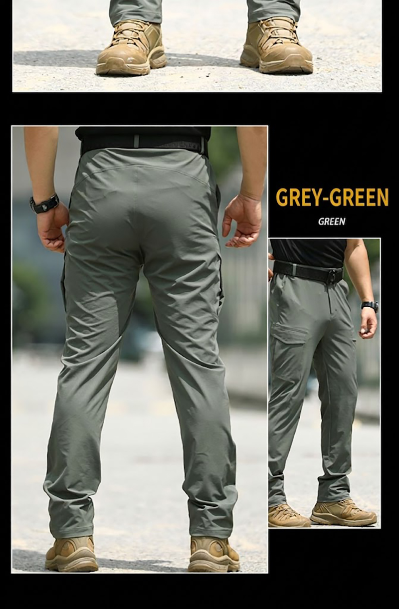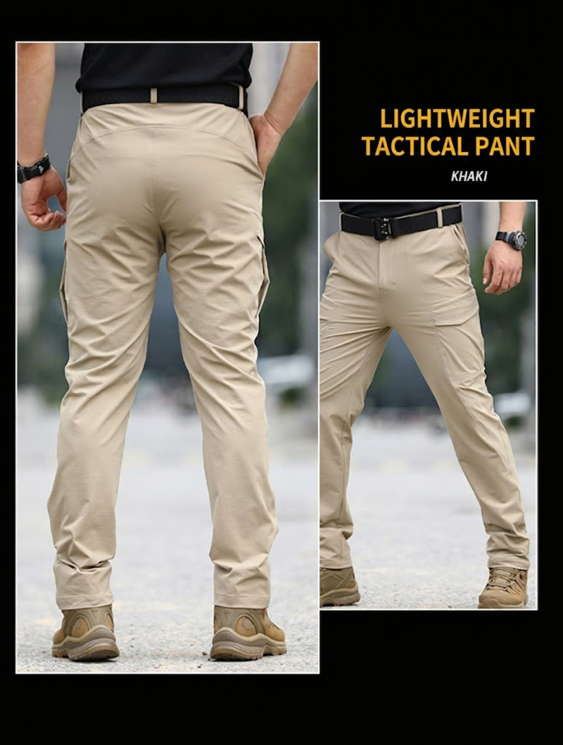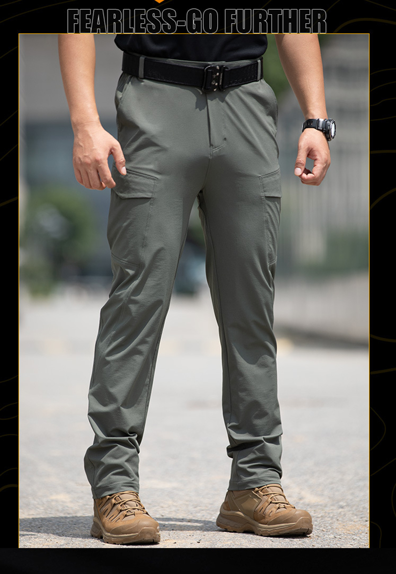 - Lightweight tactical cargo pants with a slim outdoor-ready silhouette