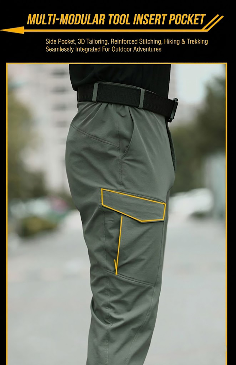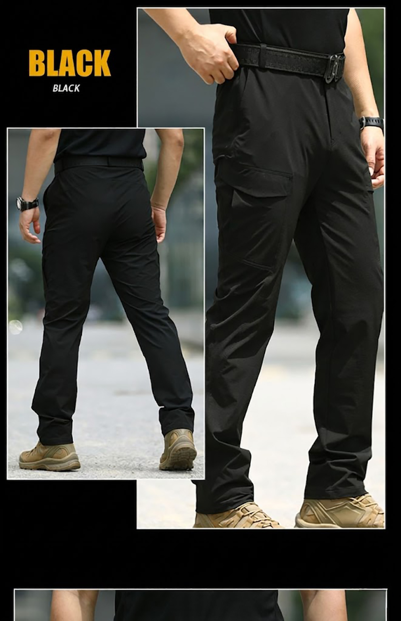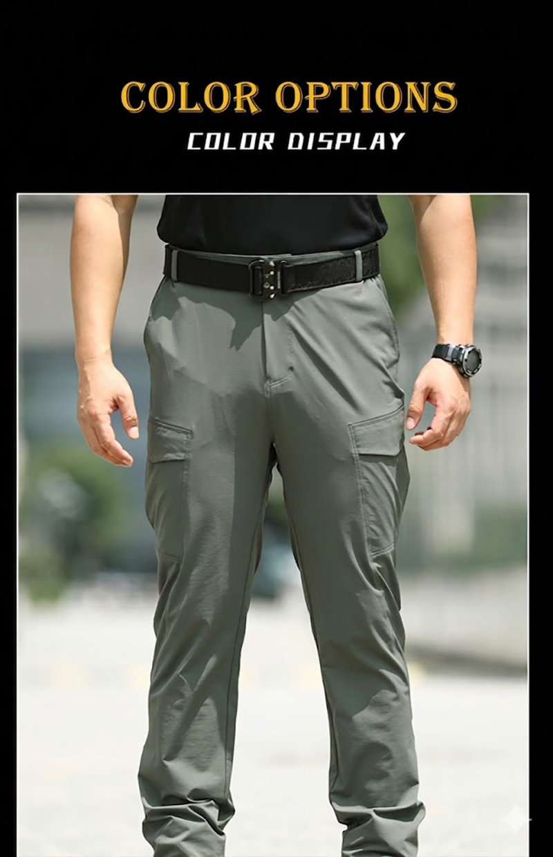 - Lightweight tactical cargo pants with a slim outdoor-ready silhouette