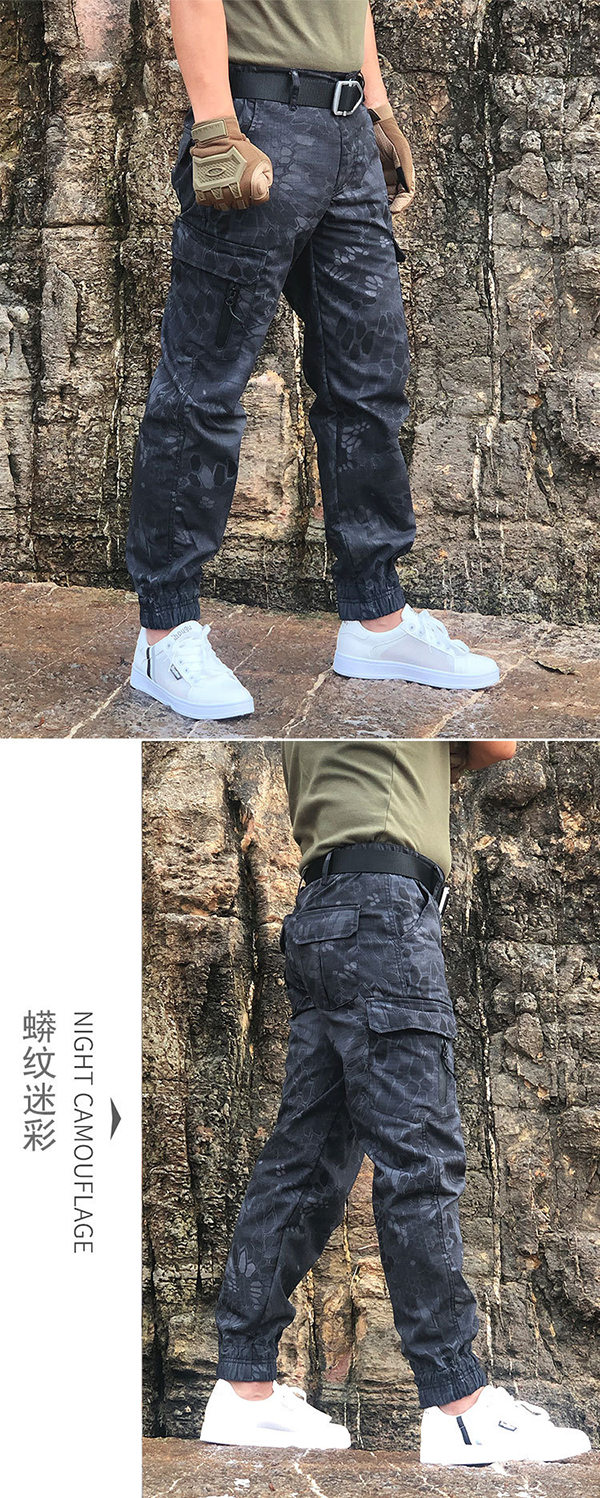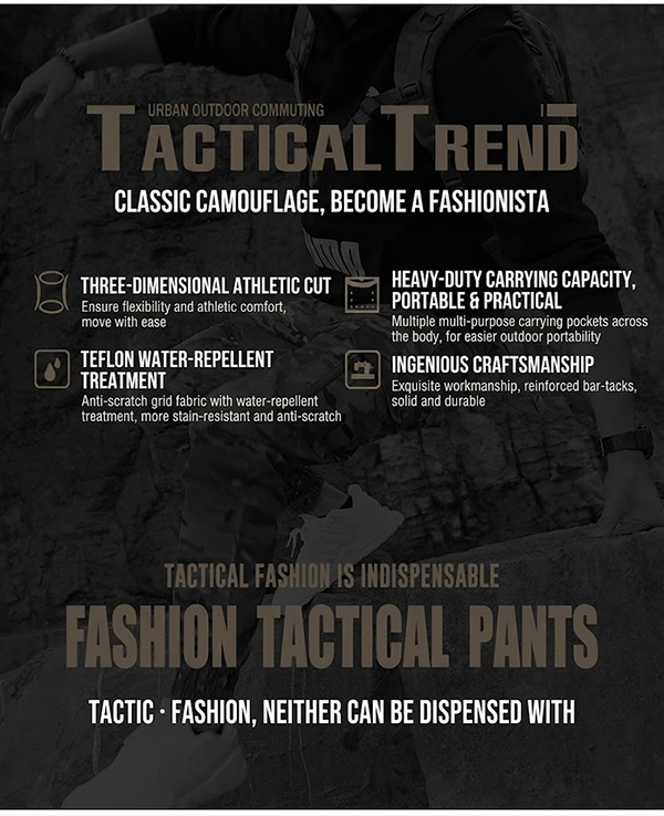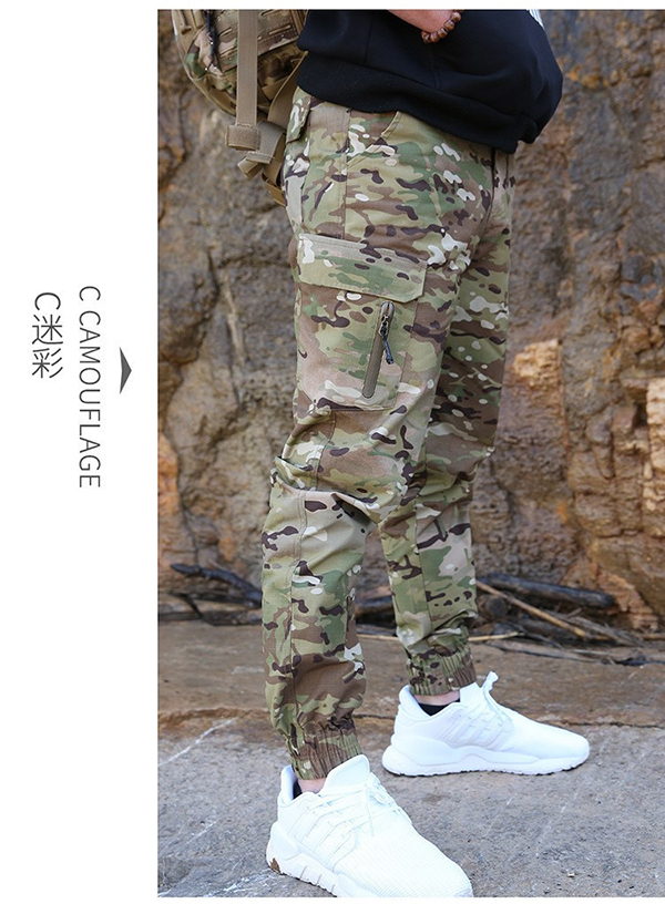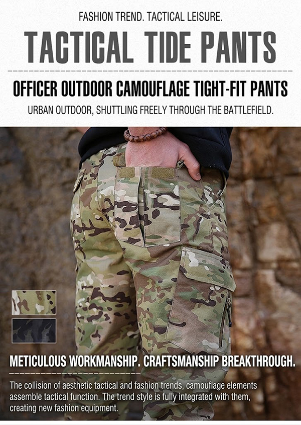 IX17S tactical jogger pants combine a sharp slim silhouette with practical outdoor functionality. The design features multiple cargo pockets, elastic ankle cuffs, a comfortable waistband, and durable camouflage fabric that works well for training, commuting, streetwear styling, and everyday outdoor use.