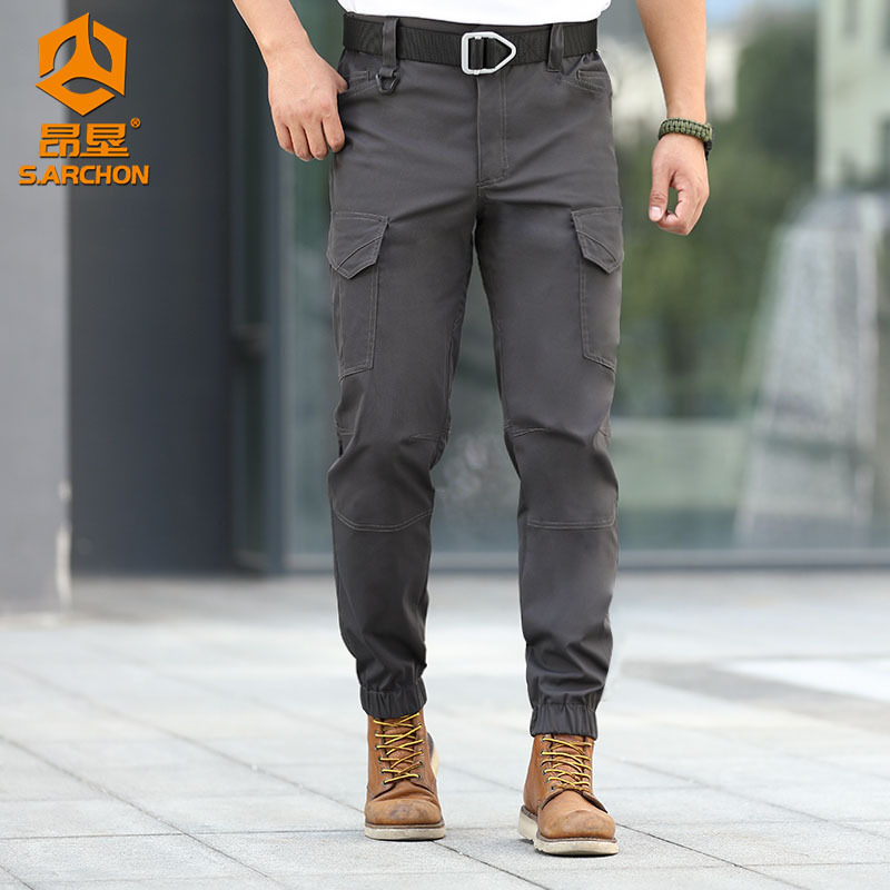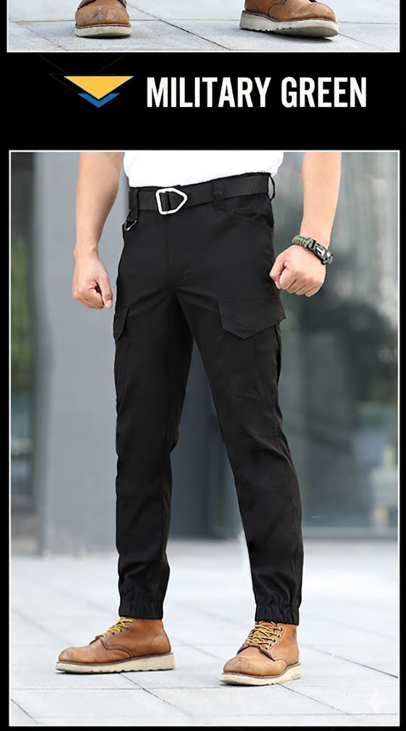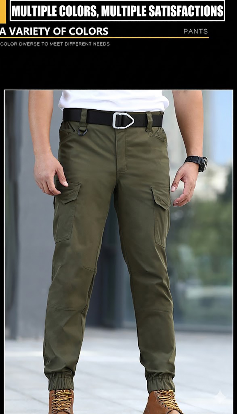 IX18S tactical jogger cargo pants combine a clean slim-fit silhouette with practical utility details for everyday wear, outdoor movement, and tactical-inspired styling. The design features stretch fabric, multiple cargo pockets, reinforced construction, and elastic cuffed hems for a modern fit that stays comfortable throughout the day.