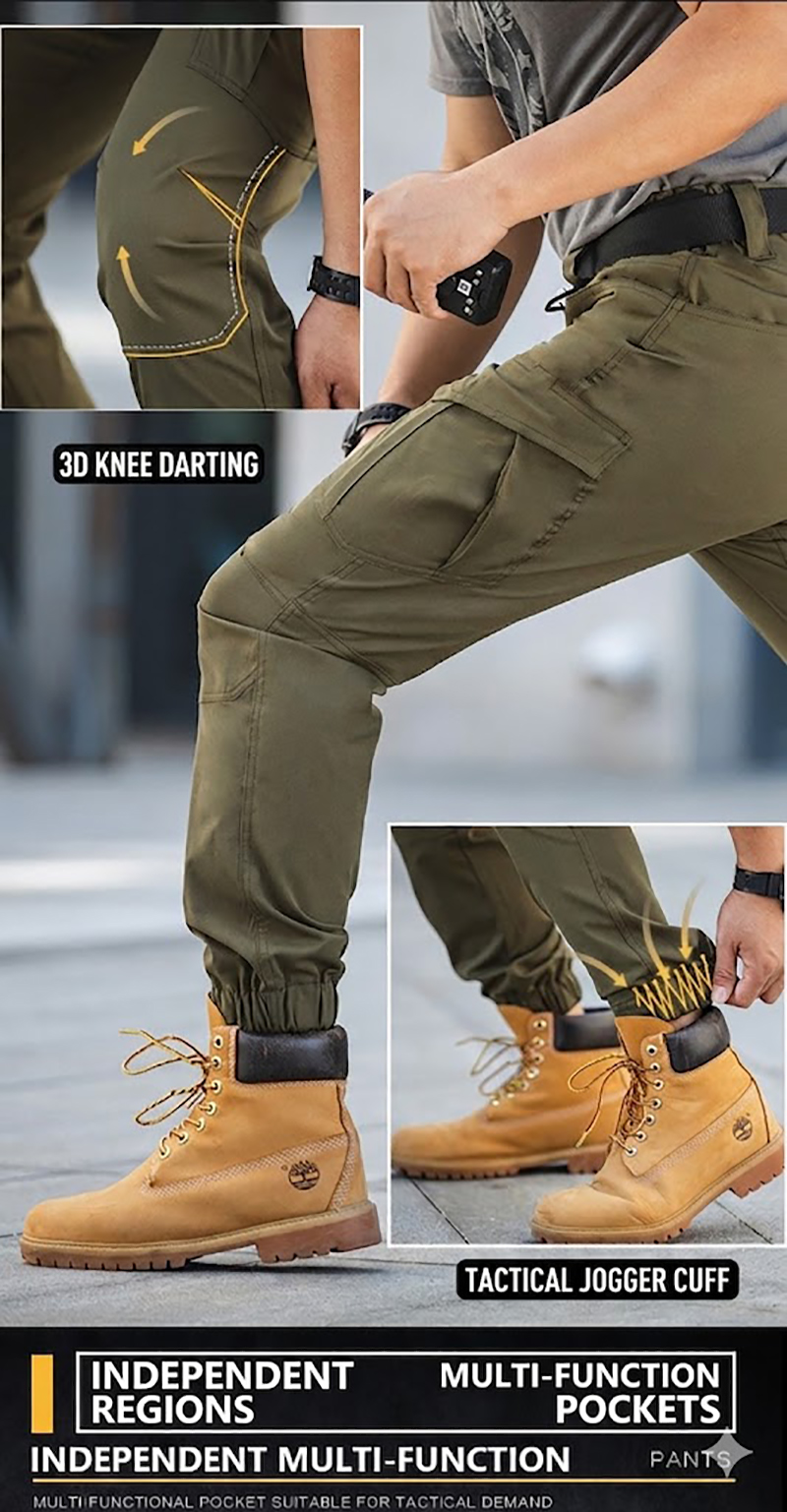 The lower-leg jogger style sets this model apart from classic straight tactical pants. Elastic cuffs create a neat tapered line around the ankle, helping the pants pair cleanly with boots, sneakers, or outdoor footwear. This finish also adds a more modern urban look and makes the pants easy to style with fitted tees, tactical tops, lightweight jackets, or utility outerwear.