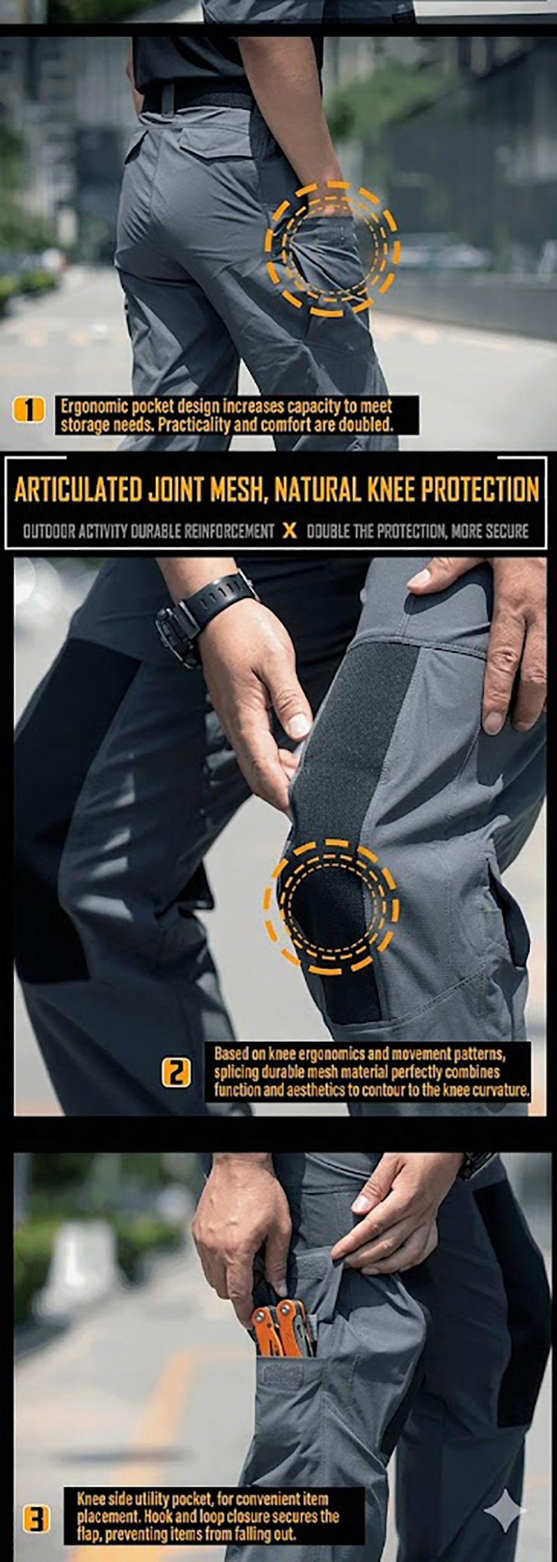 IX20 tactical cargo pants combine a clean outdoor silhouette with stretch comfort, practical utility storage, and water-repellent performance. The articulated construction, multi-compartment pockets, and durable tactical styling make them well suited for hiking, training, travel, commuting, and everyday outdoor wear.