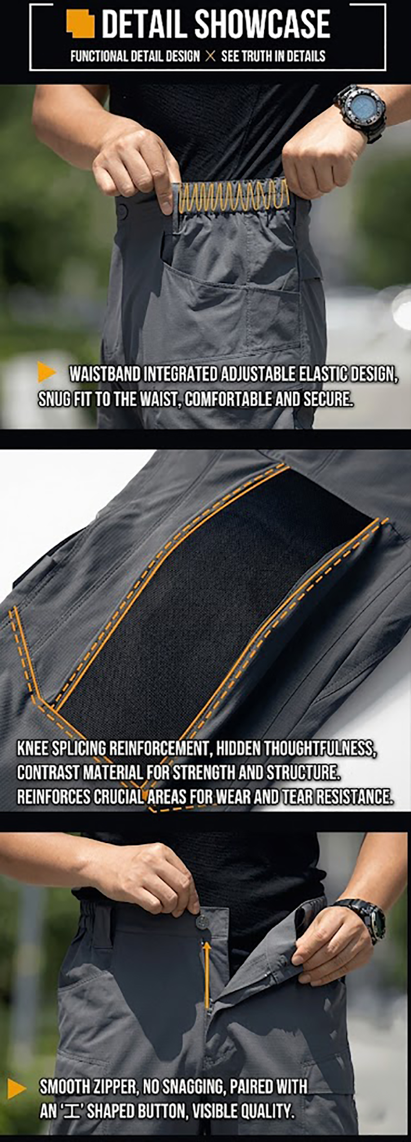 The material is positioned as durable and water-repellent, helping the pants feel more capable in changing conditions. Light splashes and daily outdoor use are handled with more confidence while the overall construction still appears lightweight enough for regular wear.