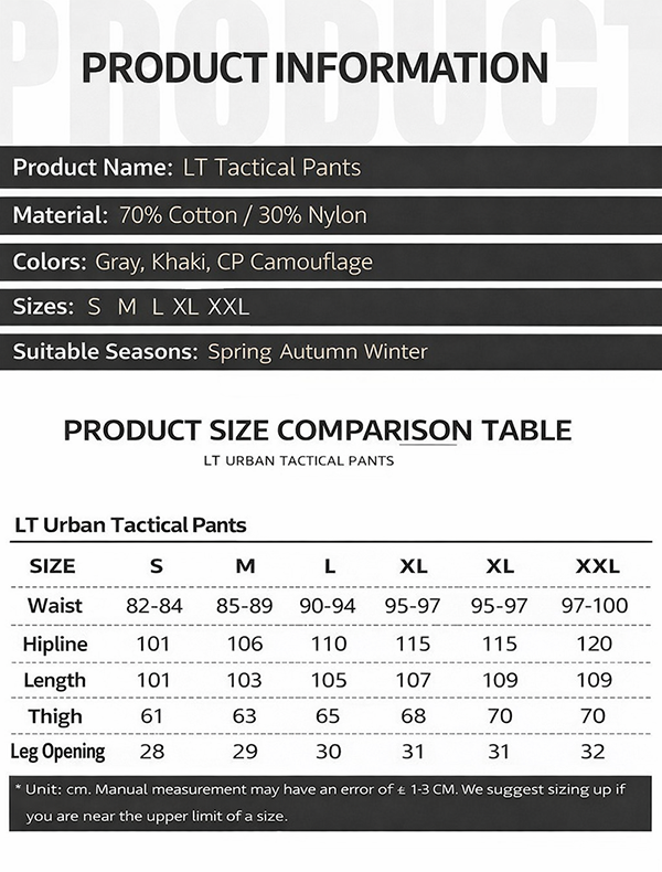 IX23 Urban Tactical Pants combine a clean tactical silhouette with practical outdoor performance. The design features a durable cotton-nylon fabric blend, multiple utility pockets, adjustable ankle cuffs, and reinforced construction for everyday training, hiking, work, and outdoor use.