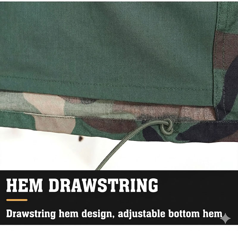 - Adjustable hem drawstring for added flexibility