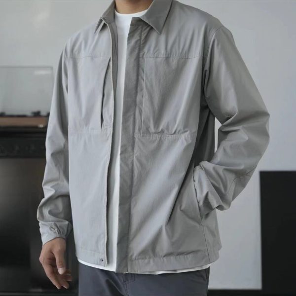 JK11 Men’s Lightweight Spring-Summer Shirt Jacket – Minimal Lapel Casual Outerwear