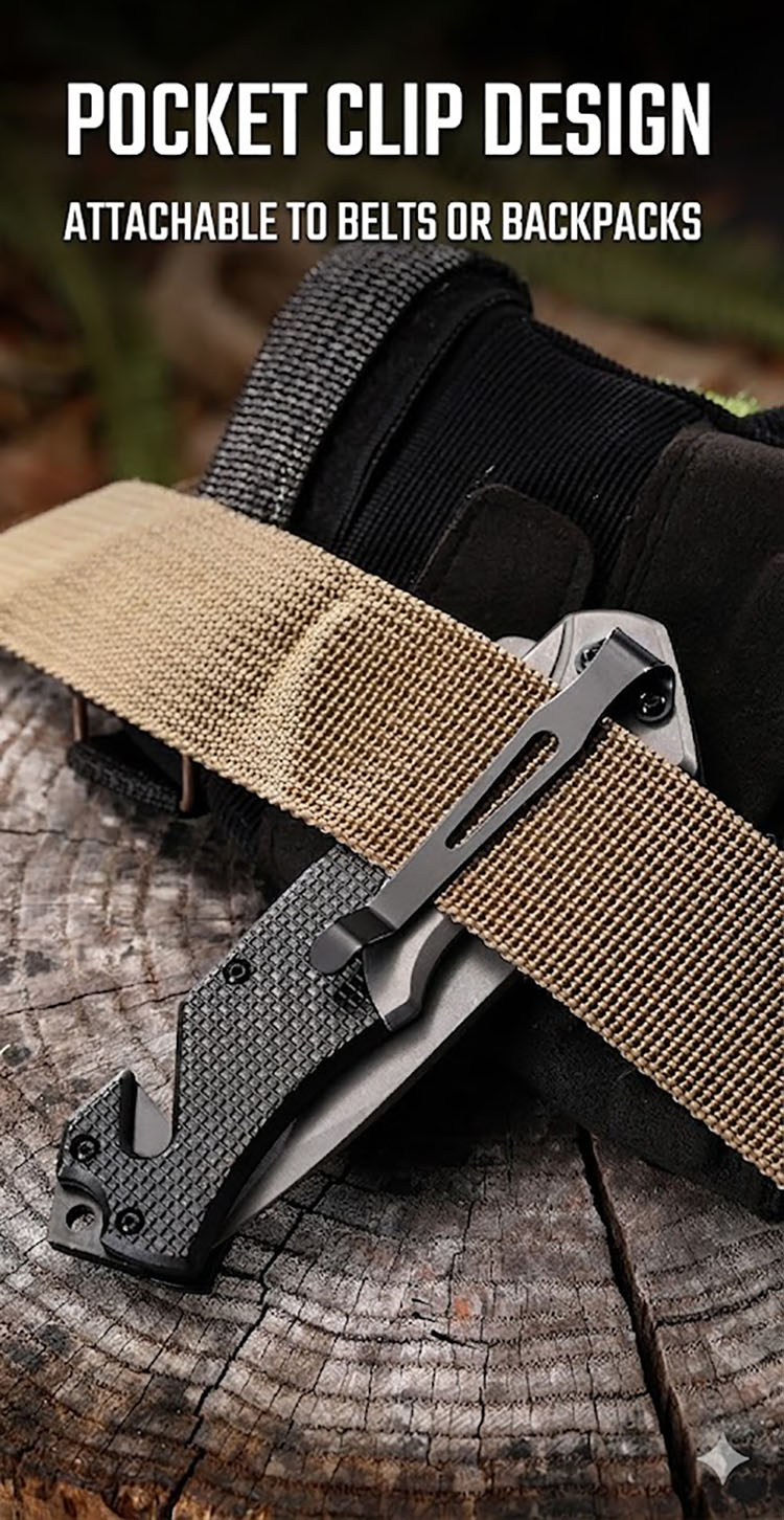 Convenient Everyday Carry With an overall length of 220mm and a slim profile, it provides the substantial feel of a heavy-duty tool while remaining incredibly portable. The heavy-duty pocket clip allows you to securely attach the knife to your belt, tactical vest, or backpack strap, ensuring your multipurpose tool is always just an arm’s reach away.