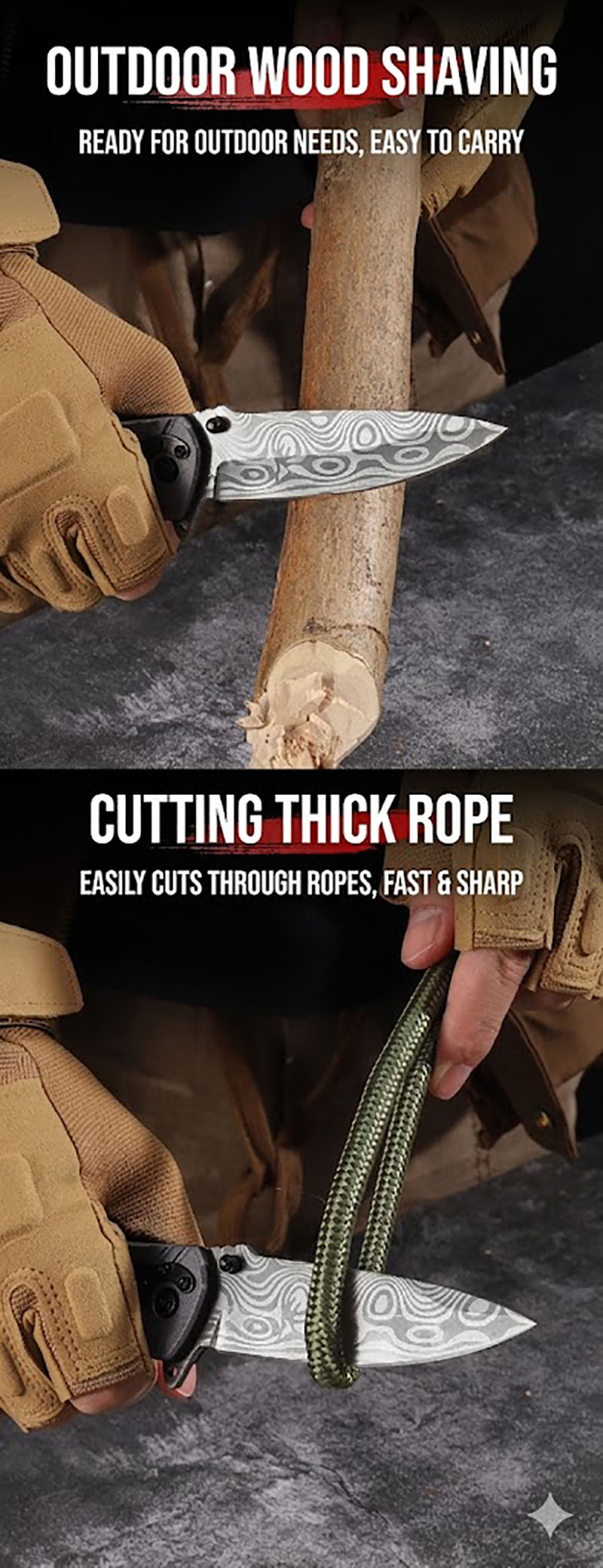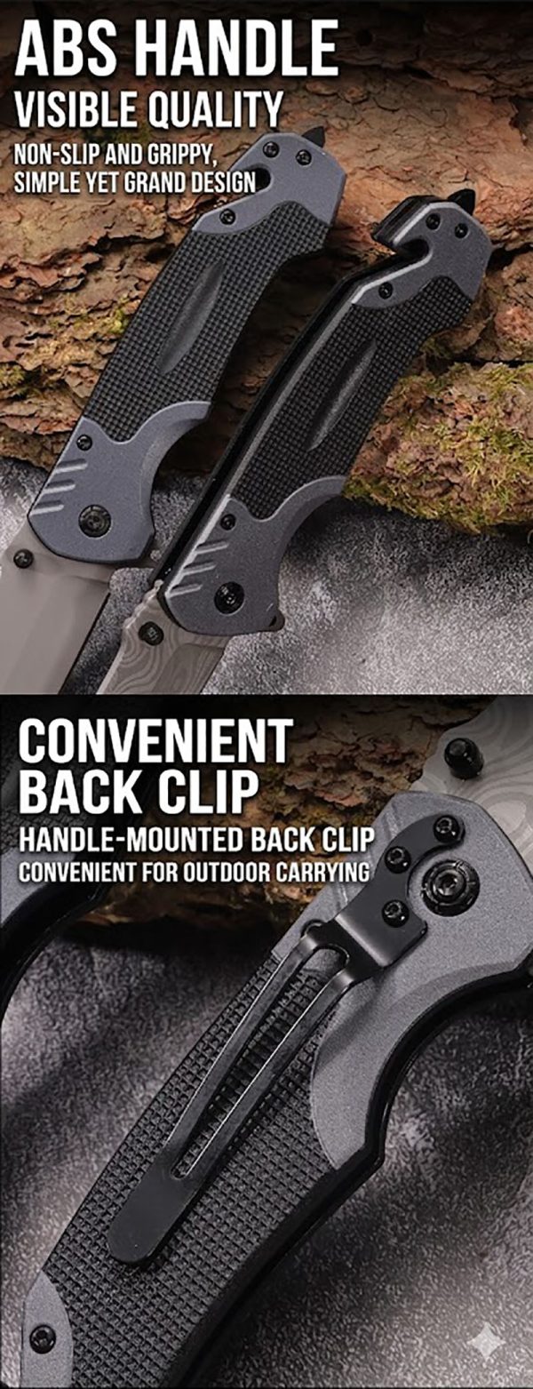 Integrated Survival Essentials This compact gear goes far beyond simple cutting. The robust handle incorporates a specialized hook for slicing through thick ropes and emergency seatbelts with unmatched speed. Furthermore, a solid glass breaker is integrated into the handle’s base, making this an essential rescue tool for self-driving cross-country trips and mountaineering.