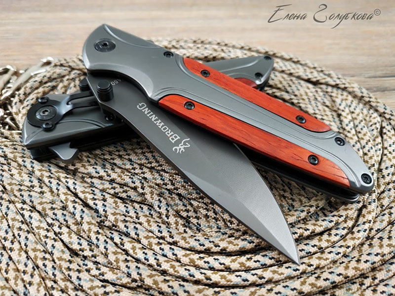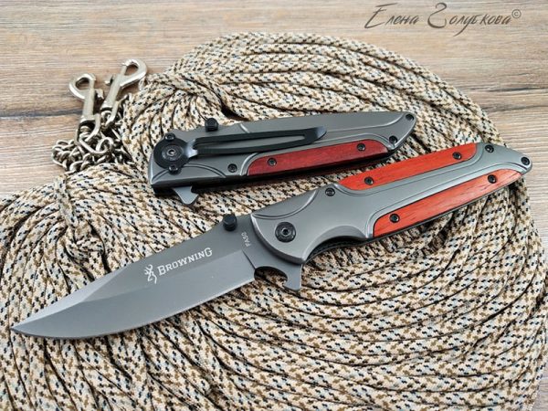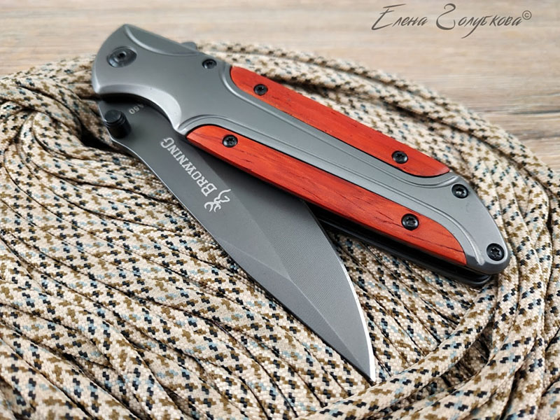 K21 Browning FA50 Semi-Automatic Tactical Folding Knife – Heavy-Duty Wood & Steel EDC Tool