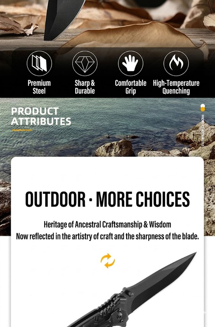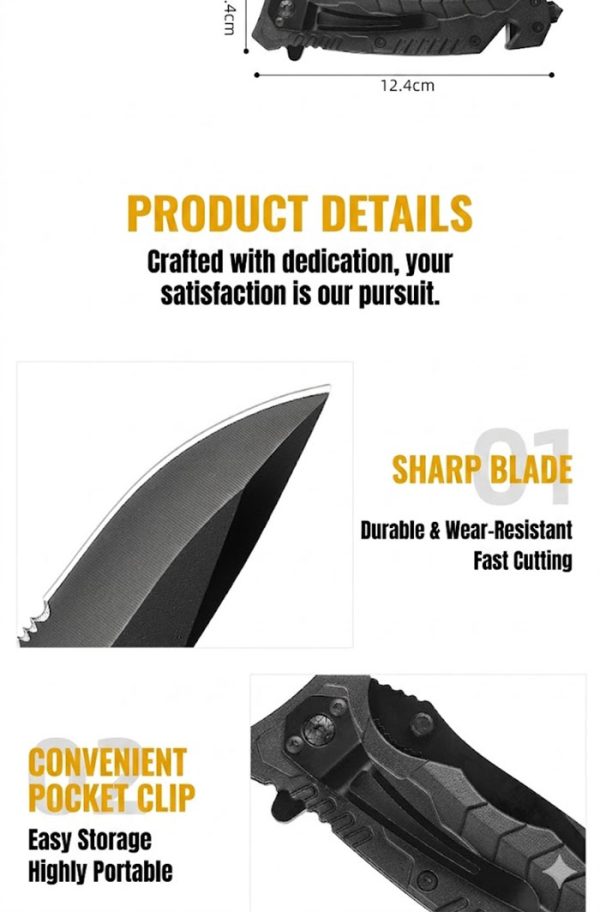 Compact and Safe Everyday Carry Despite its rugged capabilities, this knife is incredibly lightweight at only 110g. The folding design securely protects the blade when not in use, preventing self-injury and keeping the edge pristine. Equipped with a heavy-duty pocket clip, it seamlessly attaches to your belt, pocket, or backpack, offering highly portable, easy storage wherever your journey takes you.