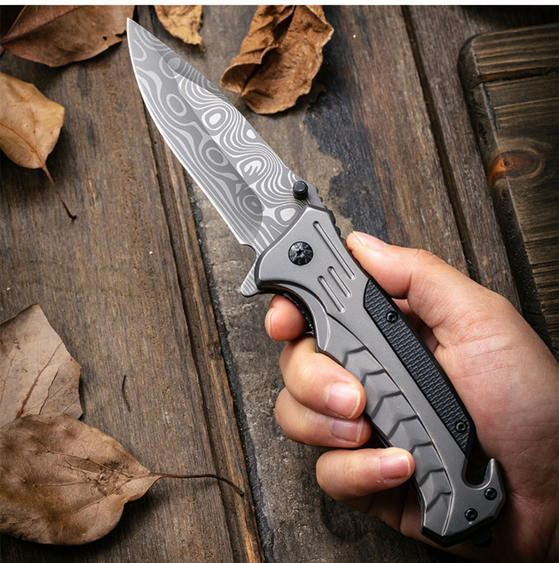 Uncompromising Cutting Power Whether you are setting up a campsite deep in the wild or handling heavy-duty daily tasks, a dependable blade is your most important asset. This tactical folding knife features a high-hardness stainless steel blade designed for exceptional toughness and edge retention. The precision-ground edge ensures clean, effortless cutting, slicing, and carving, making it highly effective for everything from wood shaving to utility work.