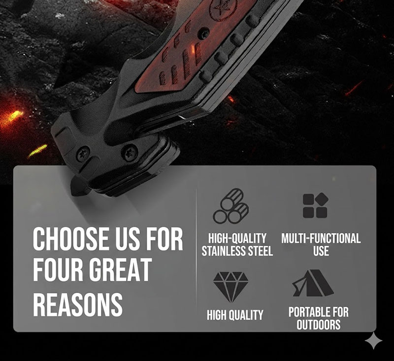 - Multi-Functional Use: Ideal for wilderness survival, tactical self-defense, vehicle emergencies, or as a reliable everyday camping tool.