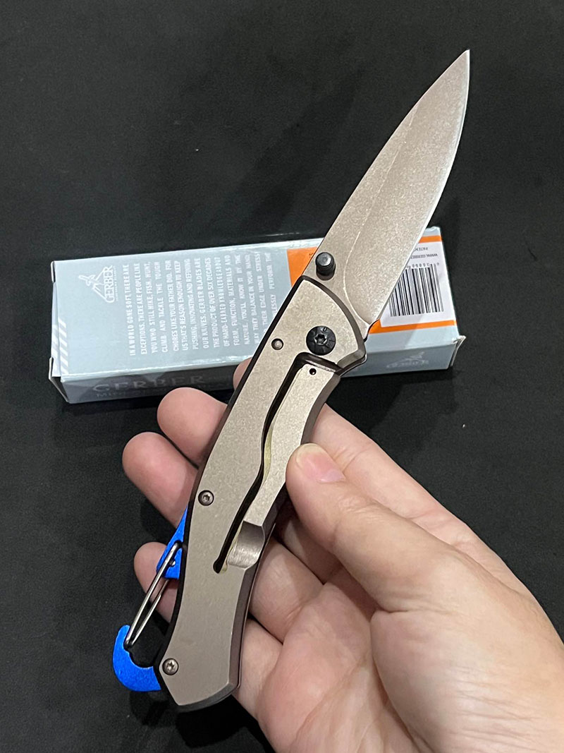 This Gerber X15 is the perfect everyday knife. The 3-inch blade is very sharp and the 5-inch handle gives me a great, comfortable grip. I love the blue carabiner clip—I just snap it onto my backpack when I go hiking in Kirirom.