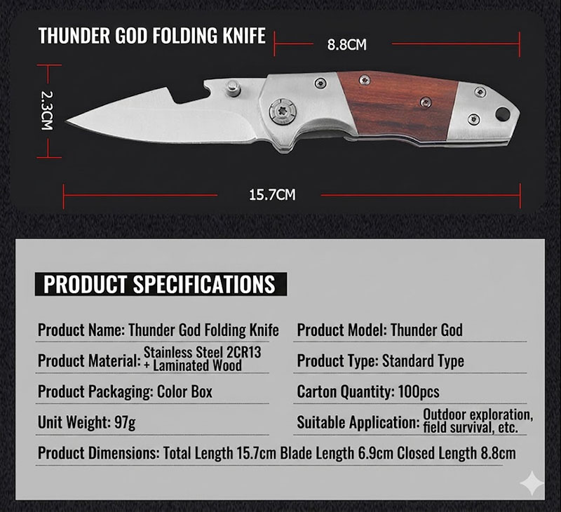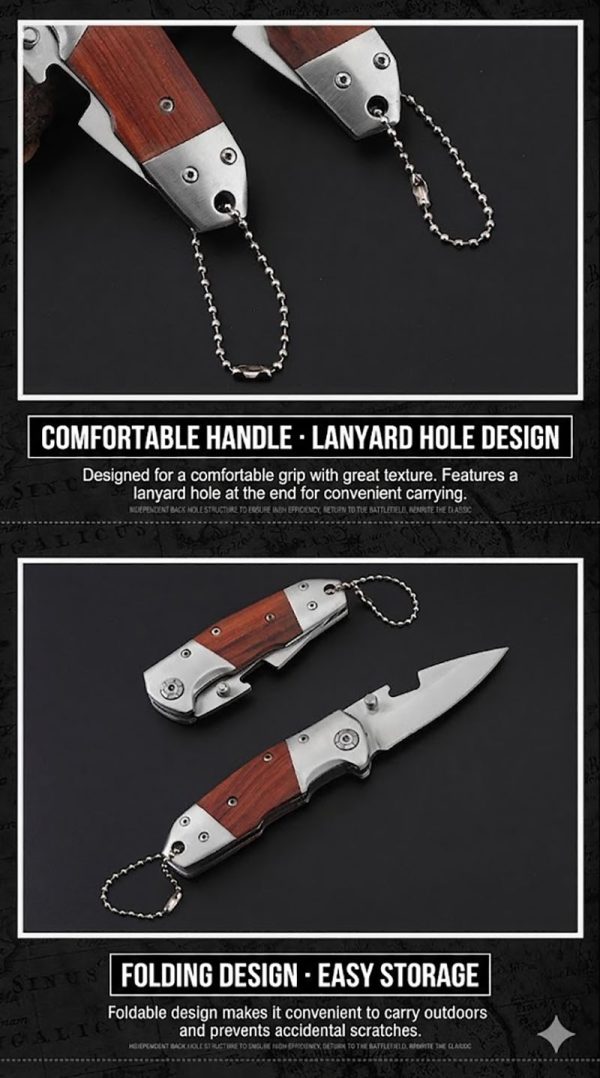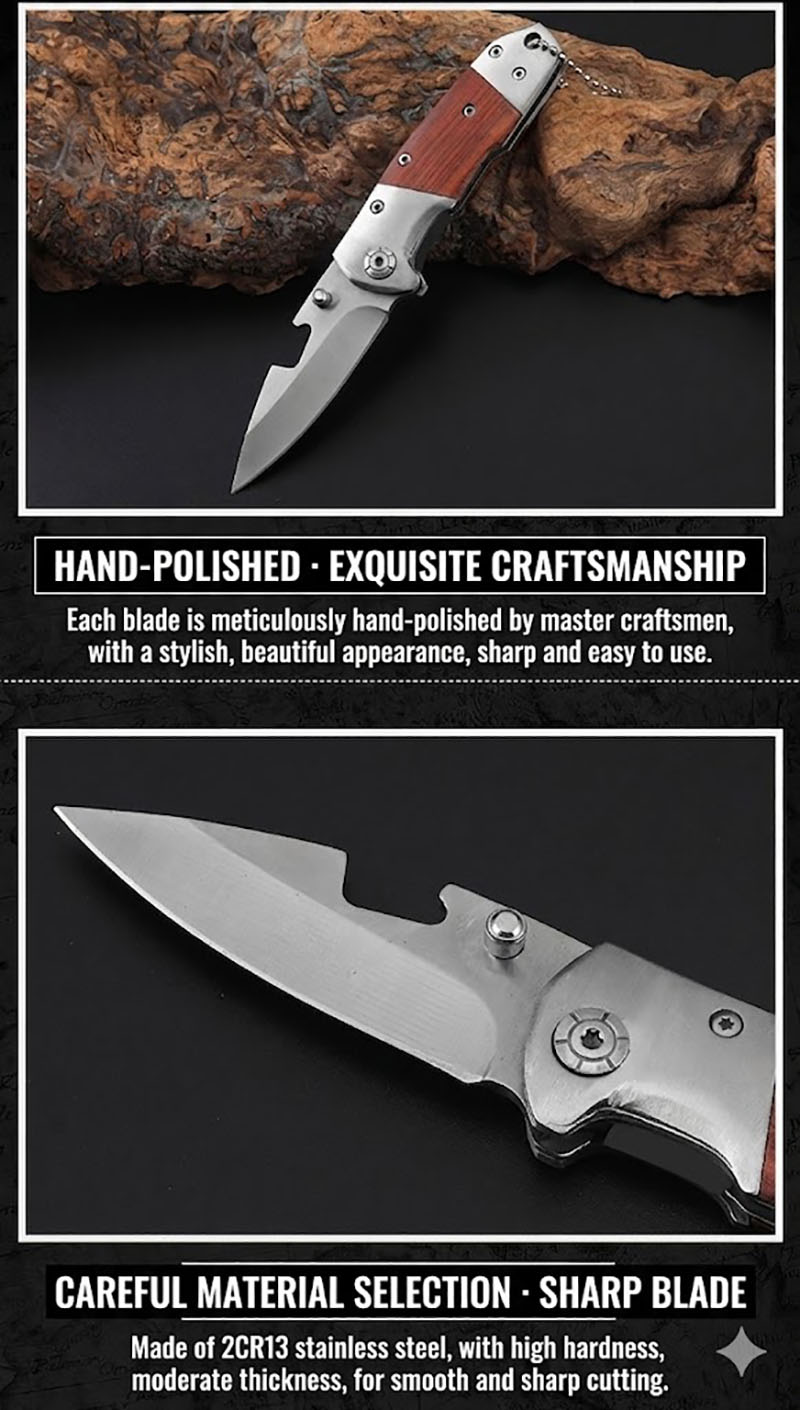 The K61 Tactical Folding Knife is a reliable life-saving tool designed for the rugged outdoors. Featuring a high-hardness stainless steel blade and an ergonomic red wood handle, this sharp and portable knife is ideal for self-defense, camping, and emergency utility. It is built to endure the elements while providing professional performance for everyday carry.