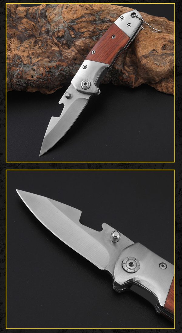 K61 Premium Tactical Folding Knife – Red Wood Handle & High Hardness Steel