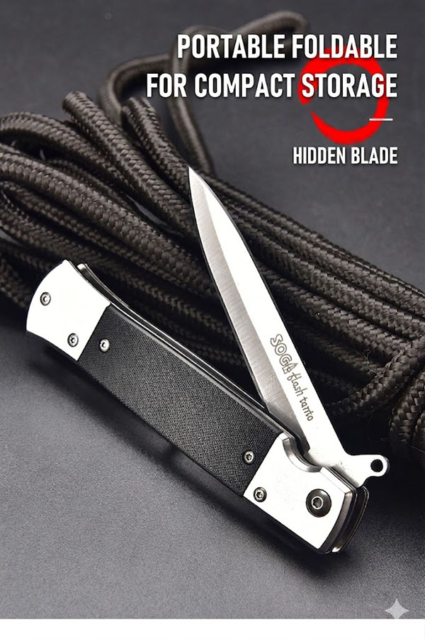 - Compact Folding Mechanism: Designed with a hidden blade for safe storage and easy transport.