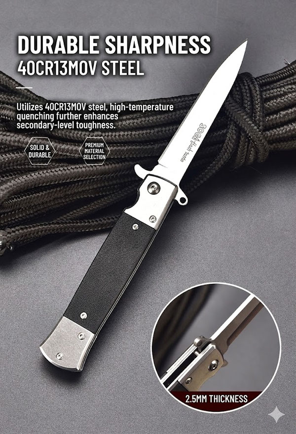 - High-Grade 40CR13MOV Steel: Provides exceptional hardness and long-lasting durability.