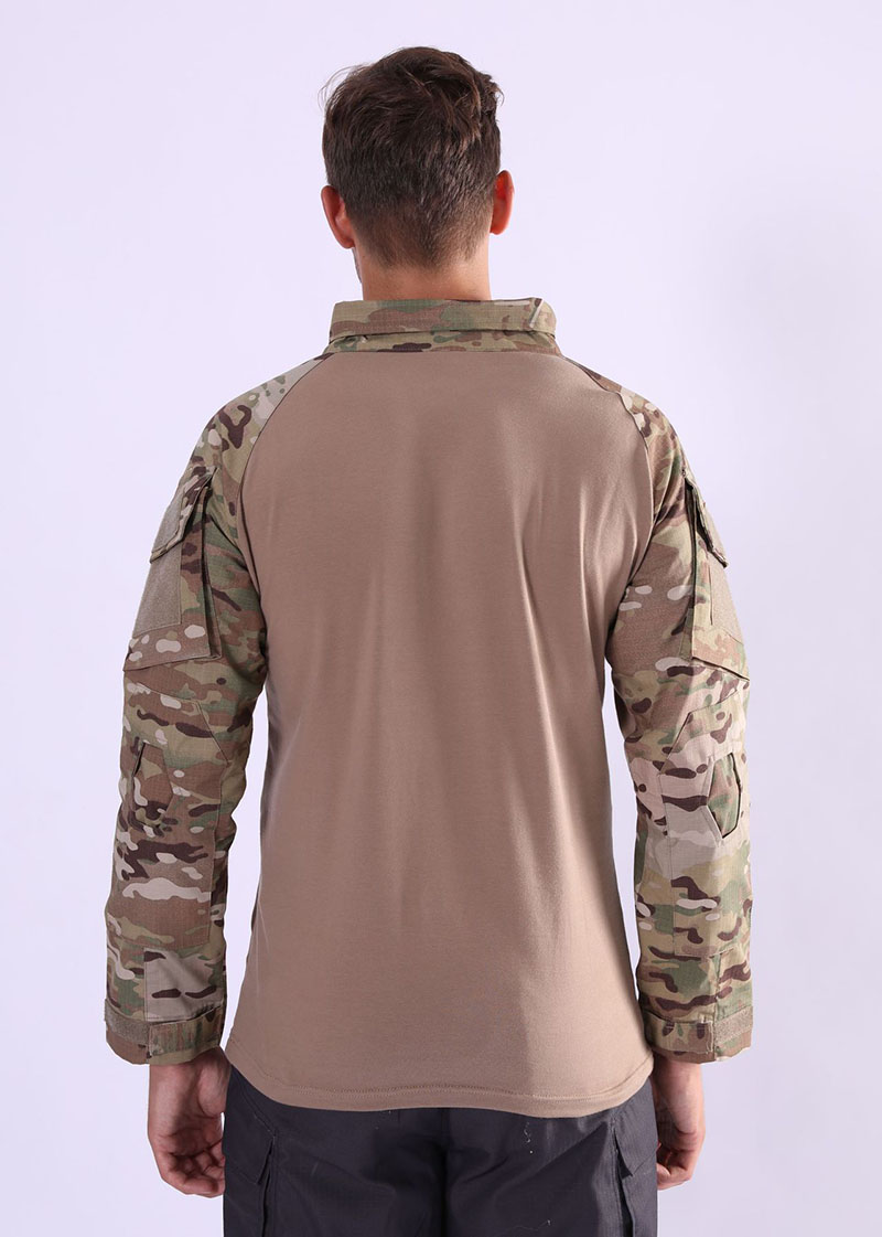 Tactical Combat Shirt Styling with a Clean Field-Ready Look TSL02 is built for customers who want a long sleeve combat shirt that feels sharp, practical, and easy to wear for both active use and daily tactical styling. The contrast between the solid-color body and camouflage sleeves creates a clean, structured look that stands out from an ordinary long sleeve top. It delivers a strong field-inspired identity while still keeping the overall design streamlined and wearable.