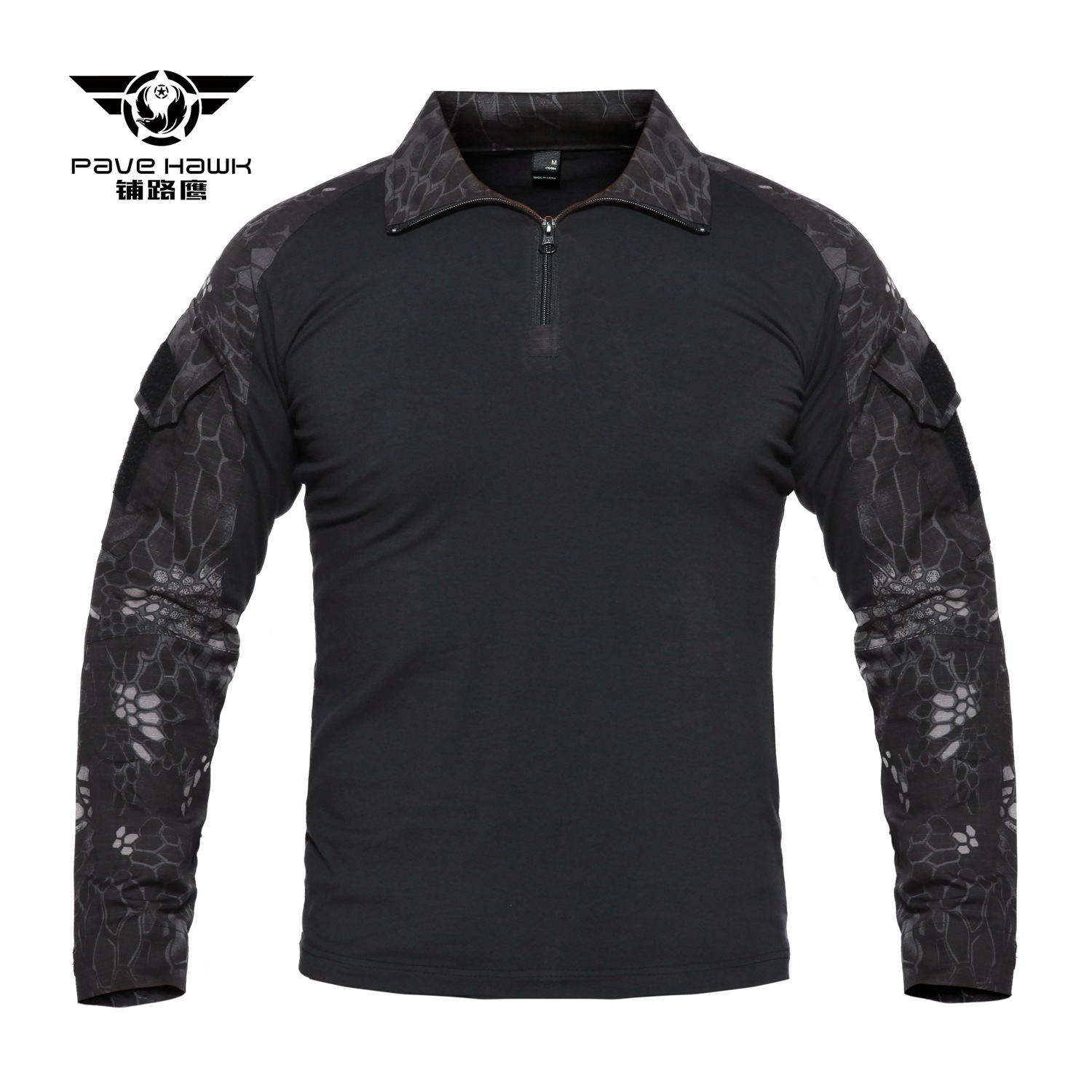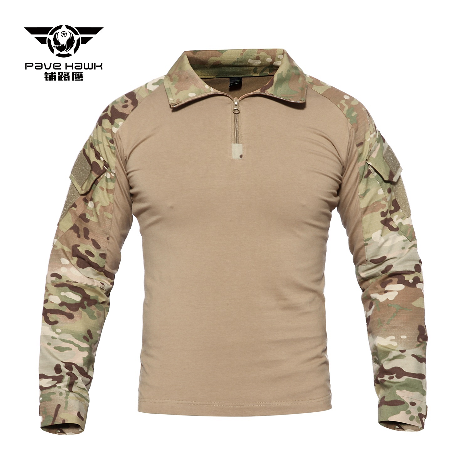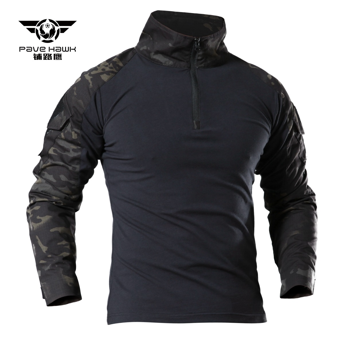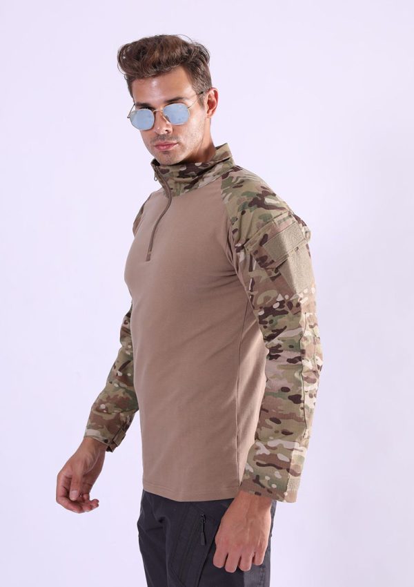TSL02 is a tactical long sleeve combat shirt designed for training, outdoor movement, and utility-focused wear. It combines a solid-color body with camouflage sleeves, a quarter-zip collar, and sleeve pocket details, creating a practical field-ready look that stays streamlined and comfortable.