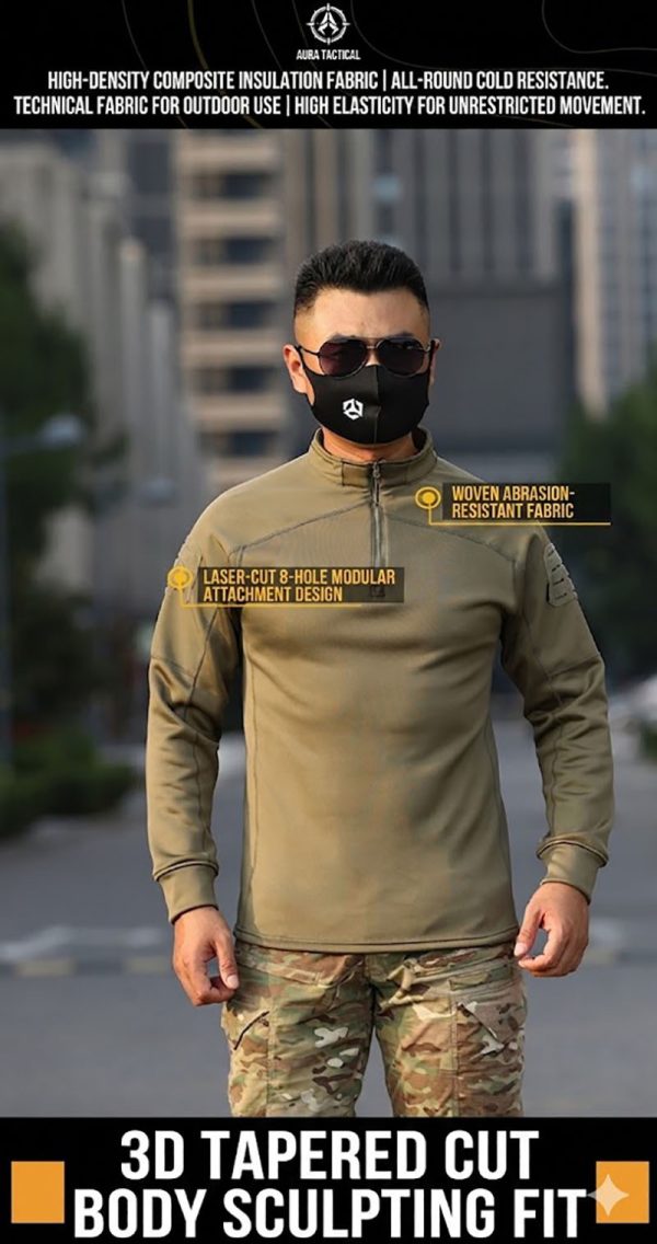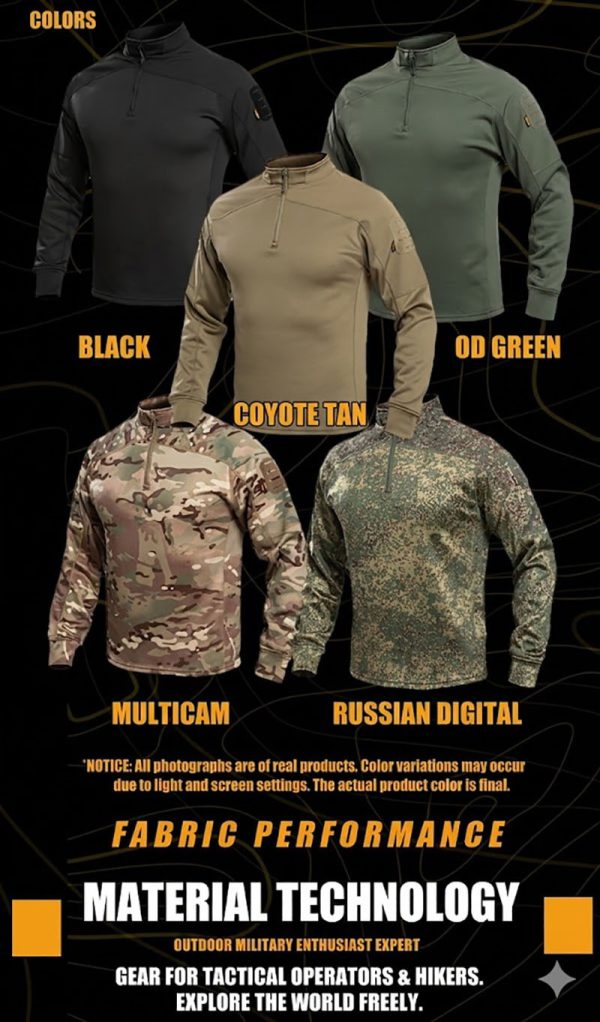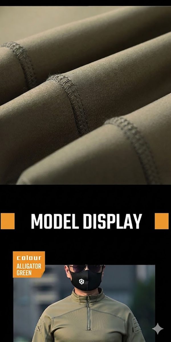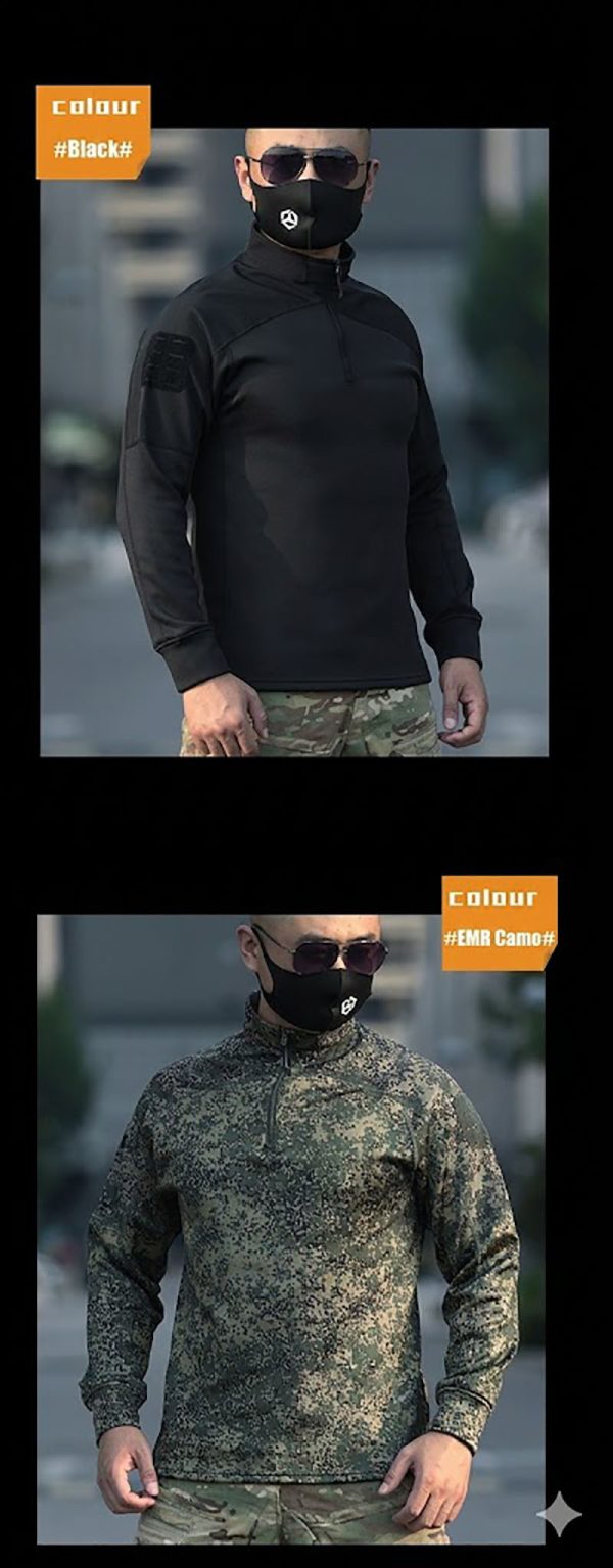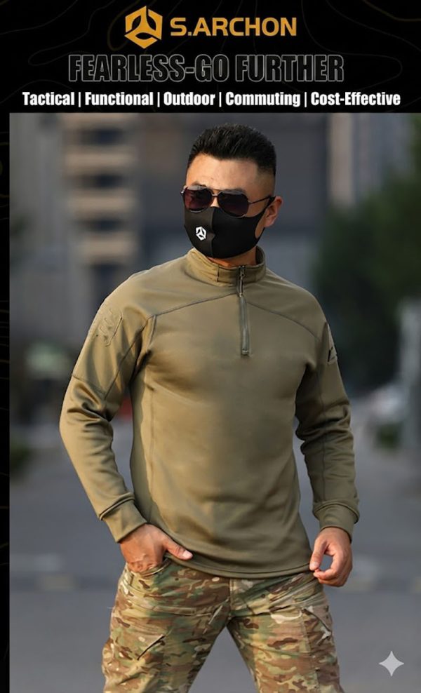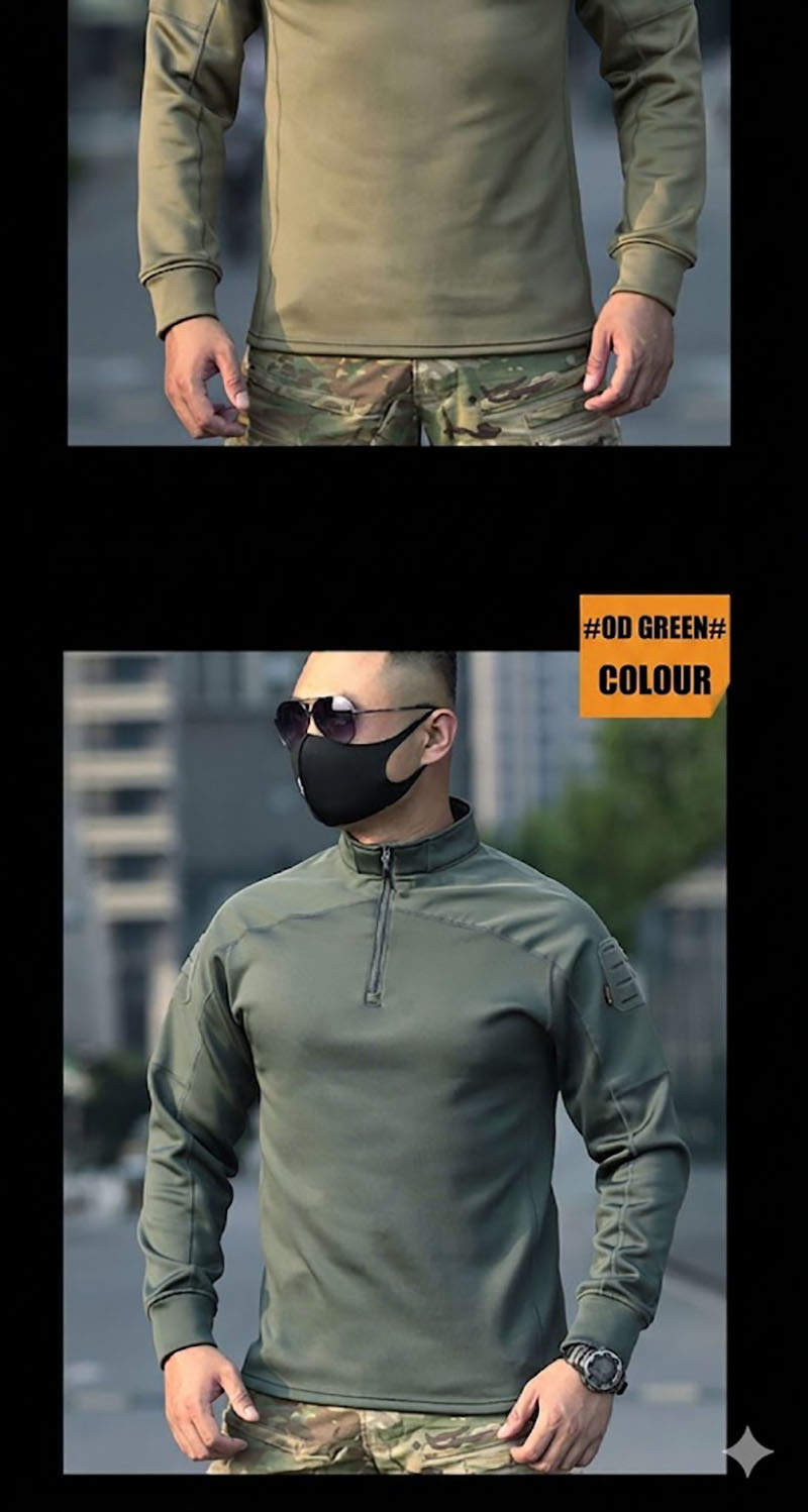 1. Clean Tactical Look for Everyday Outdoor Use This long-sleeve tactical top combines a sharp outdoor identity with a neat, wearable silhouette. The quarter-zip collar gives it a disciplined military-inspired look, while the fitted cut keeps the profile clean and modern. It is easy to wear on its own or under a jacket, making it practical for training sessions, road trips, casual outdoor activities, and everyday tactical styling.