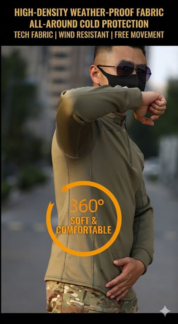 3. Built for Movement and Active Wear A training top should move naturally with the body, and this design is made with that purpose in mind. The stretch-friendly construction, shaped sleeves, and athletic cut support active movement without looking bulky. Whether used for light trekking, range-style training, outdoor exercise, or general travel, it keeps the outfit functional while maintaining a sharp tactical appearance.