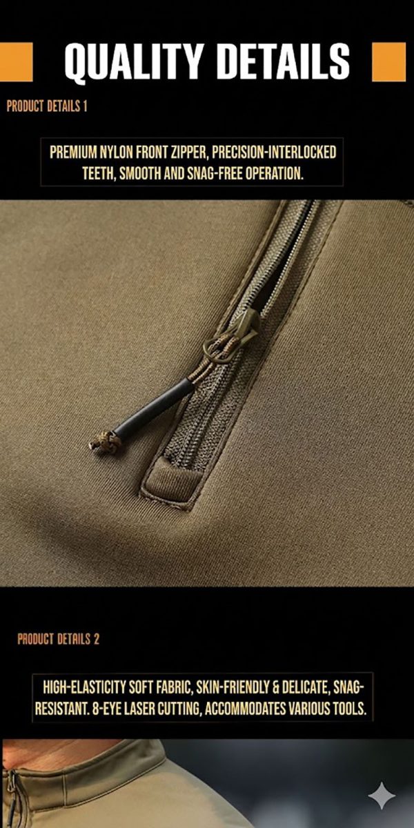 4. Thoughtful Details That Support Daily Practicality The quarter-zip neckline allows quick adjustment for warmth and ventilation, while the structured collar adds coverage around the neck when needed. The sleeve pocket detail and reinforced panel styling add visual interest without making the top feel overloaded. These details help the piece appeal to customers who enjoy tactical-inspired gear but still want something easy to wear in everyday settings.