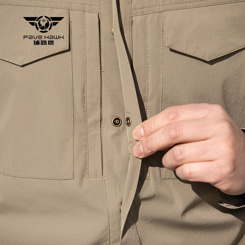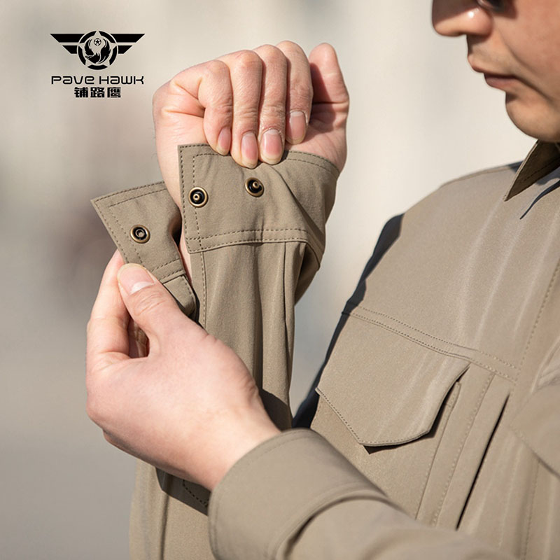 Utility Pocket Layout with a Refined Finish The two chest flap pockets add practical storage while also strengthening the shirt’s utility-focused identity. They help the front of the shirt feel more functional and more visually structured without making it look bulky. Together with the adjustable button cuffs and clean seam layout, these details give SHL09 a more refined tactical look that works well for everyday wear, outdoor styling, and utility-inspired outfits.