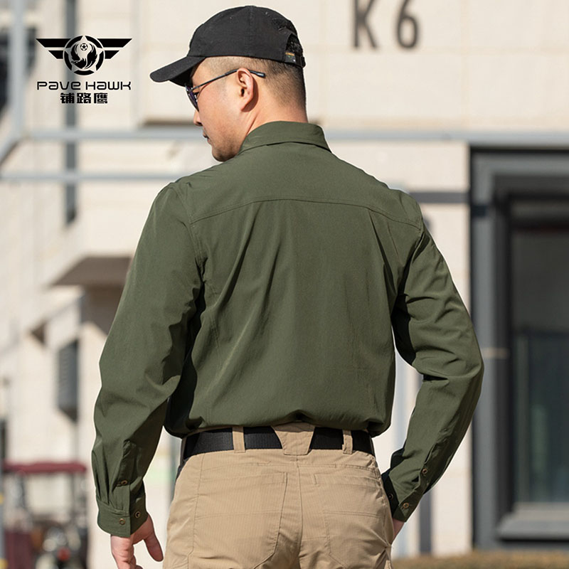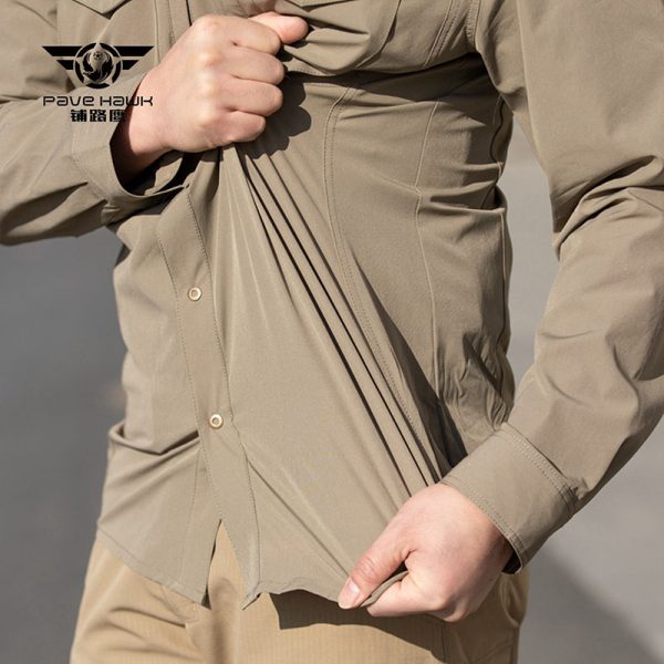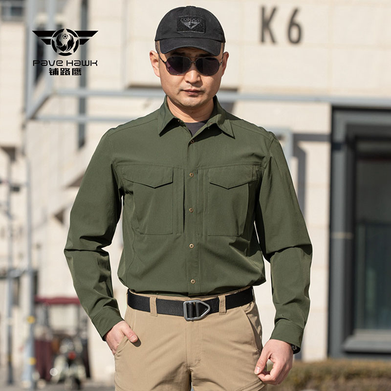 SHL09 is a clean-cut long sleeve tactical shirt built for movement, utility, and a sharp everyday field look. The lightweight quick-drying fabric, structured collar, dual chest pockets, and flexible stretch feel make it a strong choice for outdoor work, range use, travel, and daily wear in warm to transitional weather.