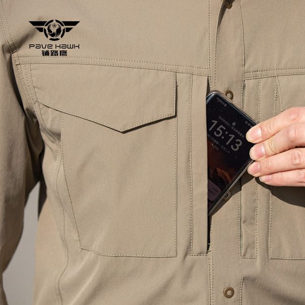 Clean Urban Tactical Style for Everyday Wear SHL09 is designed for customers who want a long-sleeve tactical shirt that feels sharp, practical, and easy to wear throughout the day. Its clean button-up front, structured collar, and balanced long-sleeve silhouette give it a polished urban-field look that feels more refined than a basic outdoor shirt while still keeping the rugged character many customers prefer. At New Way Smile Shop, we understand that many customers want clothing that looks capable and well put together without feeling too heavy for real daily life in Cambodia.