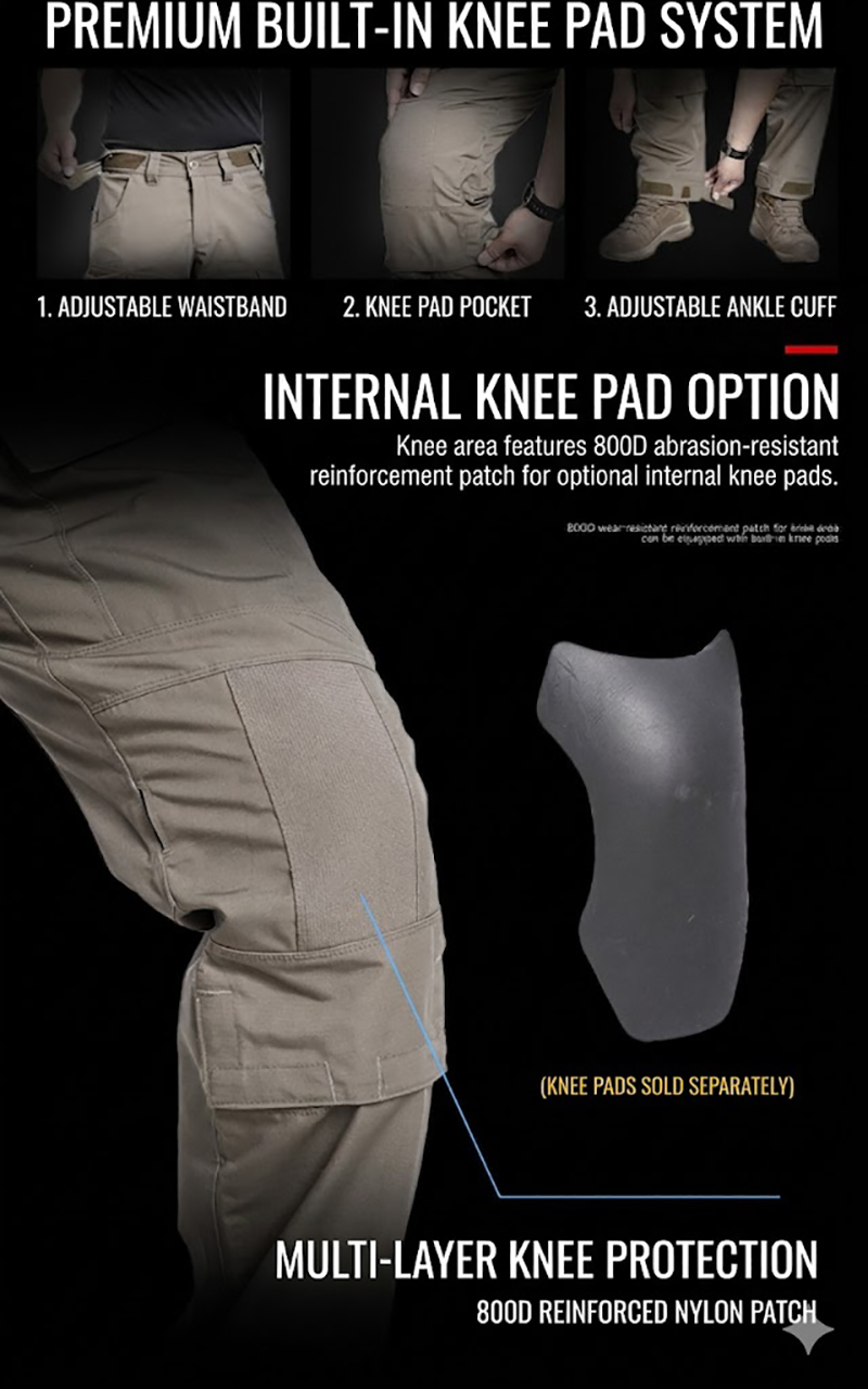 Movement-Friendly Construction for Active Use These pants are built with mobility in mind. The articulated cut and flexible panel placement help IX25 feel more natural during walking, bending, crouching, kneeling, and active routines throughout the day. This makes them especially useful for customers who want tactical trousers that can keep up with movement while still maintaining a sharp and organized silhouette.