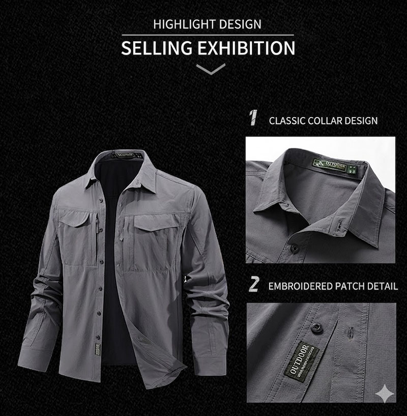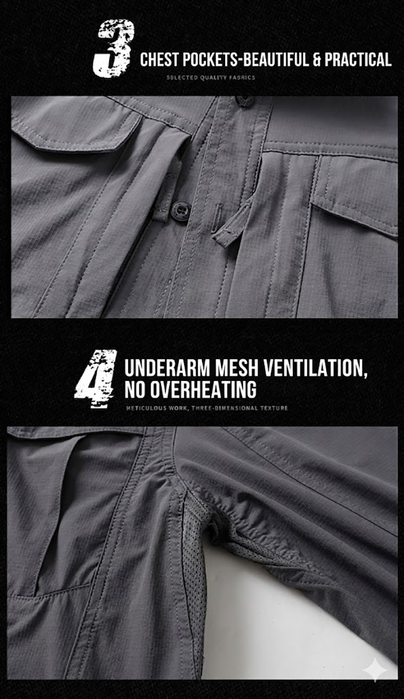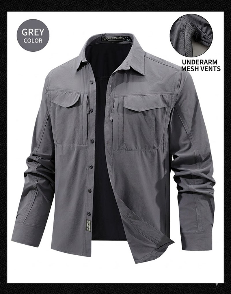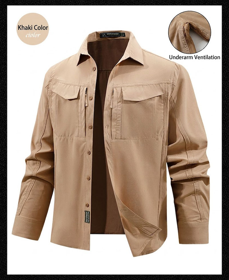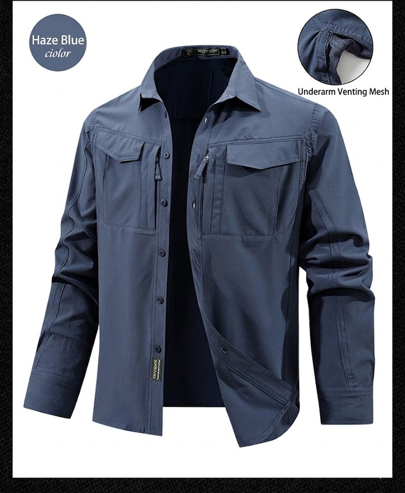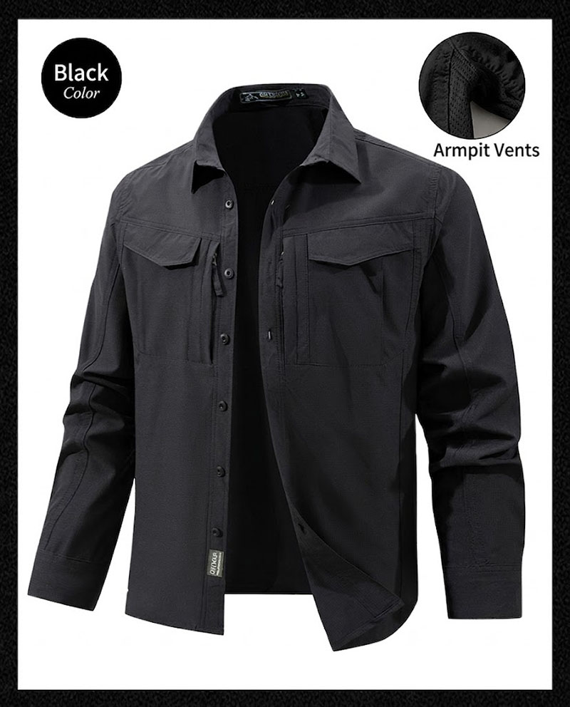 SHL06 is a lightweight tactical-inspired long-sleeve shirt designed for active daily wear, outdoor movement, and work-focused use. The clean structured collar, multiple chest pockets, stretch-friendly fabric, and underarm ventilation details create a practical shirt that looks sharp while staying comfortable through changing weather and extended wear