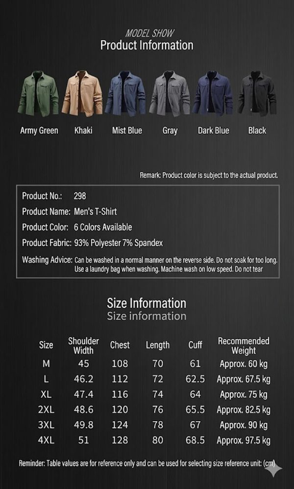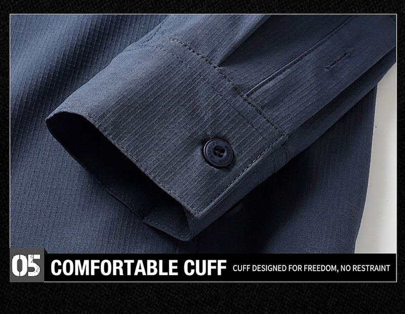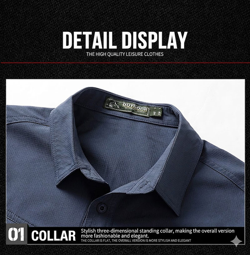 Quick-Dry Stretch Fabric Feel The fabric is presented as soft, elastic, quick-drying, and wrinkle-resistant, giving the shirt a more comfortable and easy-care finish. This helps it feel suitable for transitional weather and regular movement, especially for users who want a shirt that stays neat without looking stiff or heavy.
