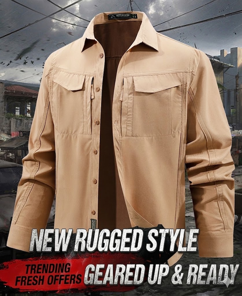 Clean Tactical Shirt Design SHL06 combines the look of a classic button-up overshirt with a more rugged tactical finish. The silhouette is neat and modern, making it easy to wear for outdoor trips, casual workdays, travel, or utility-focused everyday styling. The front layout stays balanced and functional, while the structured collar keeps the overall appearance sharp.