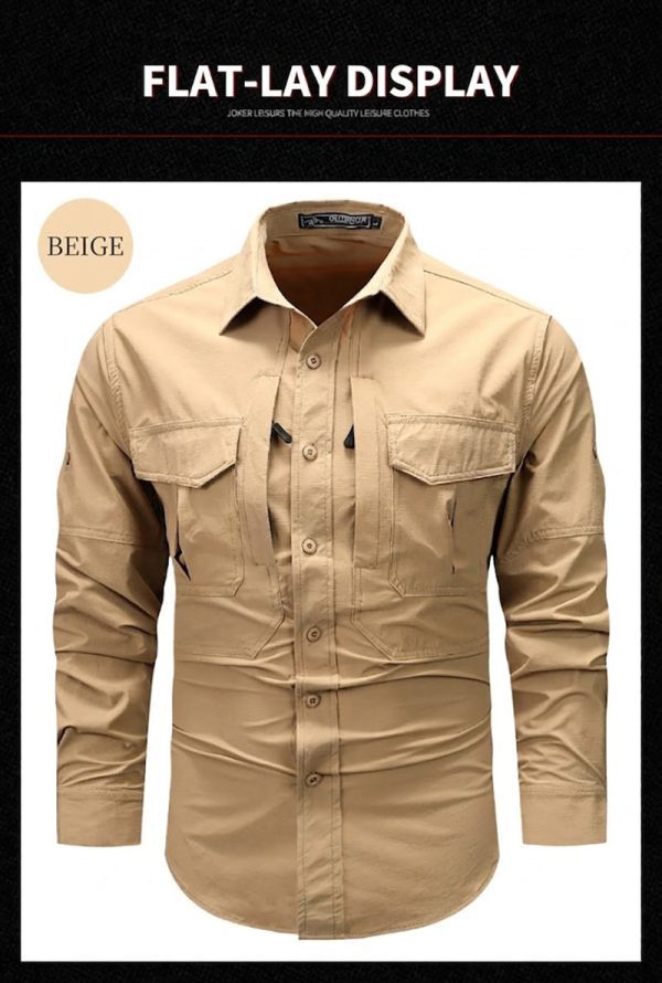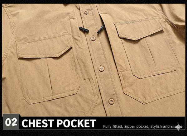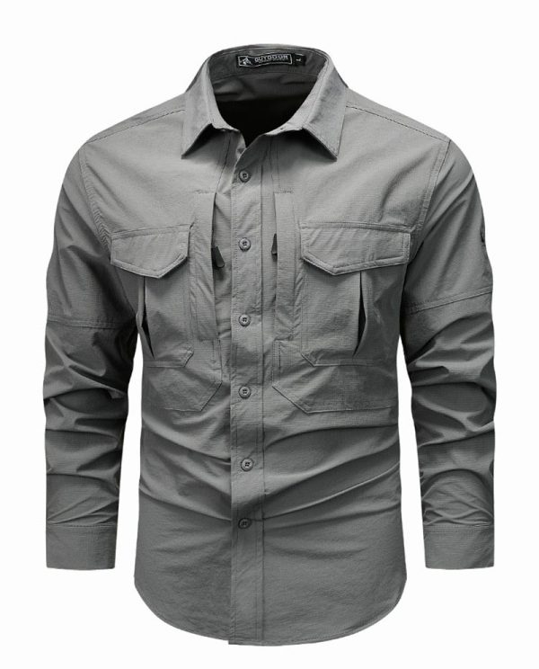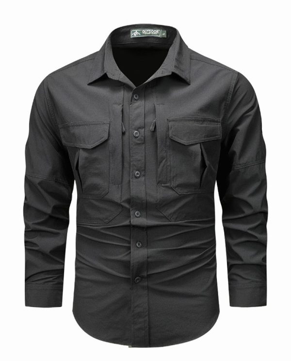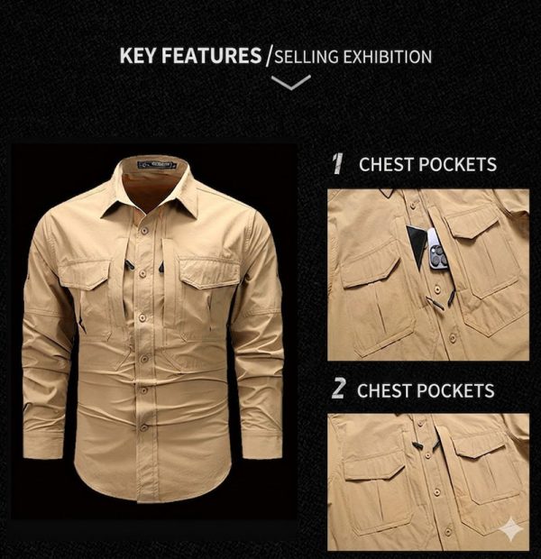 Built for outdoor movement and everyday utility, this long-sleeve tactical shirt combines a clean structured look with practical storage and easy-wearing comfort. The lightweight fabric blend, button-front design, and dual chest pockets make it a versatile choice for hiking, travel, work, and casual daily wear.