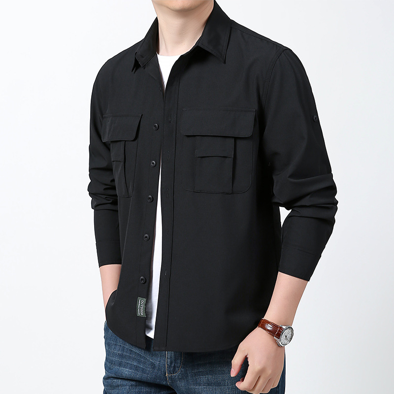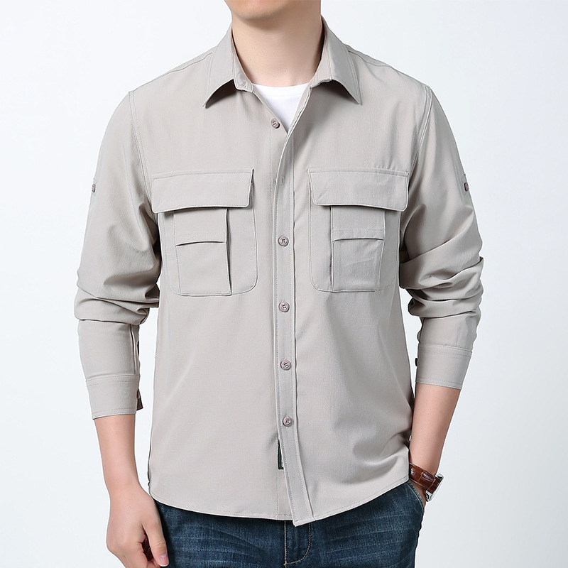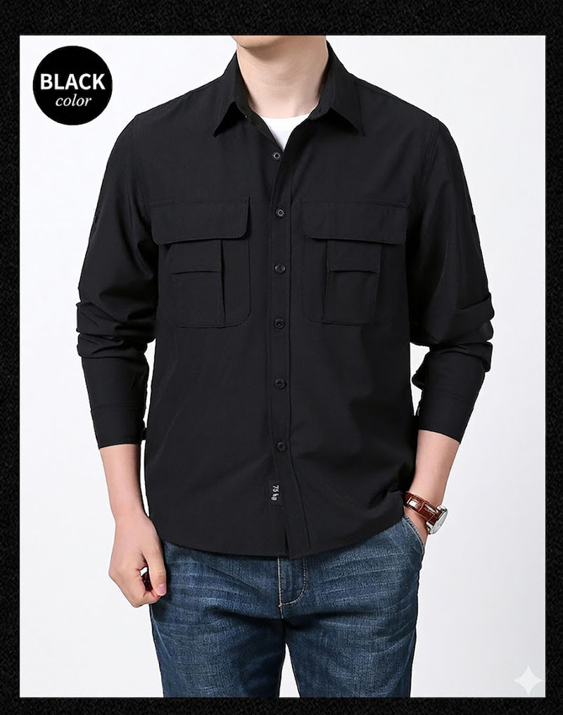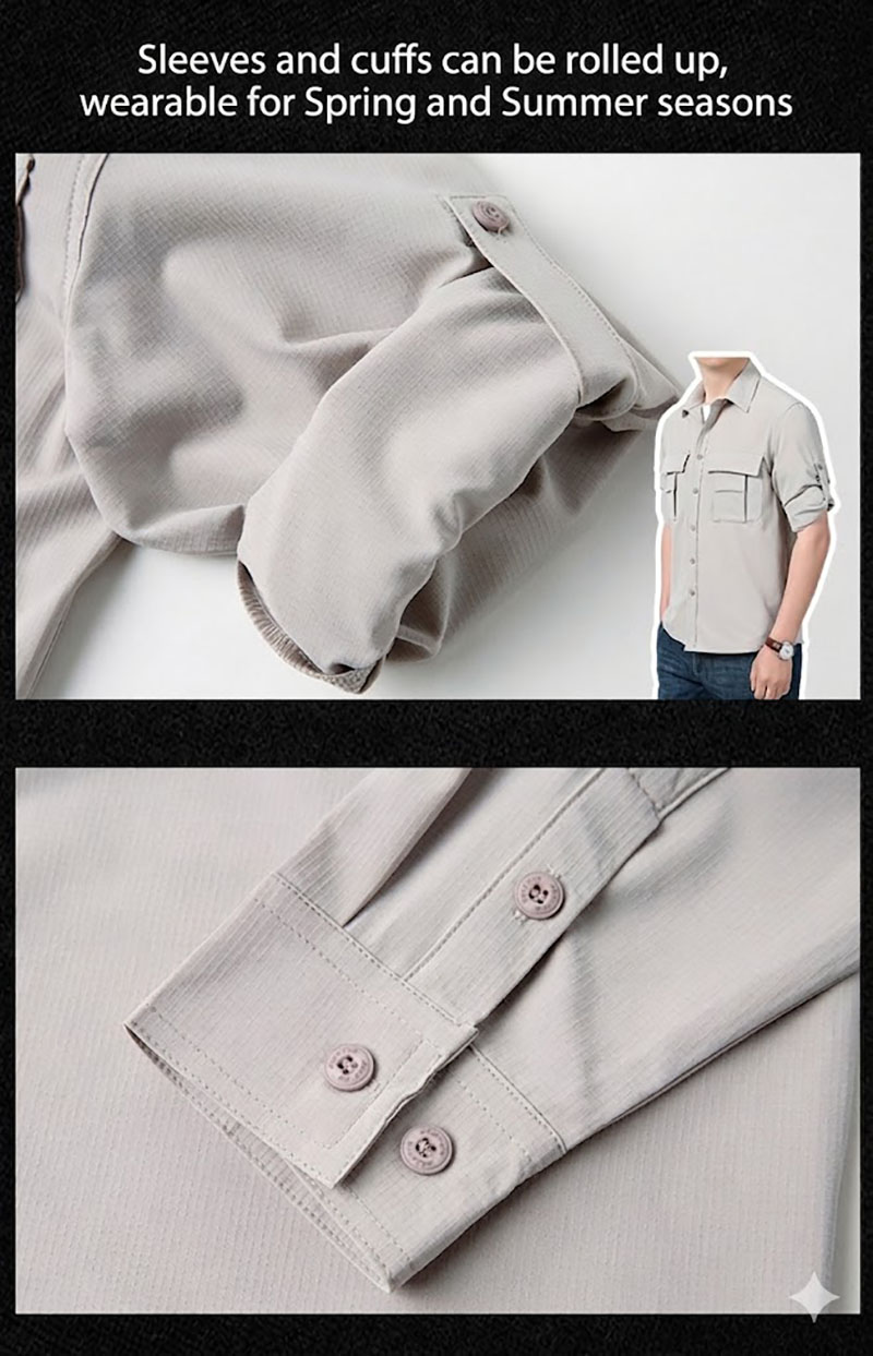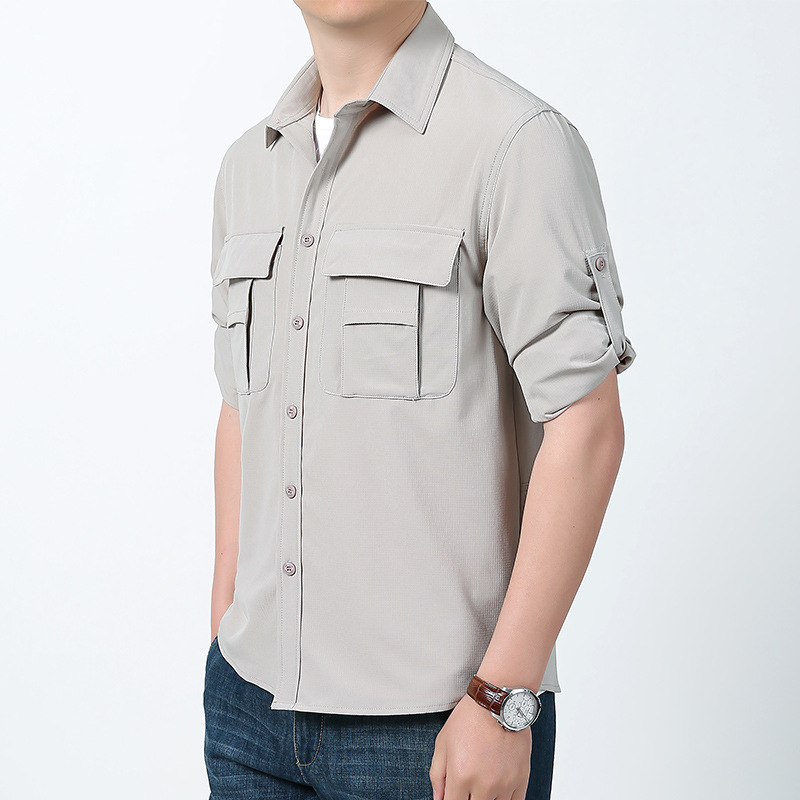 SHL20 is a lightweight long-sleeve utility shirt designed with a clean modern silhouette, quick-drying stretch fabric, and practical chest-pocket storage. With breathable construction, roll-up sleeve styling, and multiple versatile color options, it works well for daily wear, travel, light outdoor use, and casual workwear-inspired outfits.