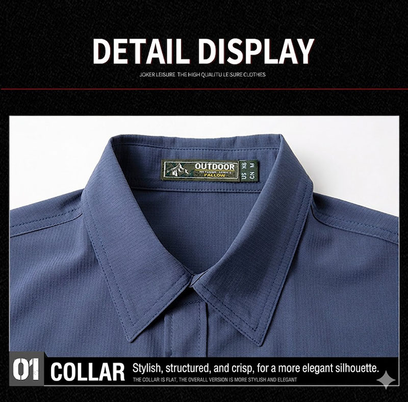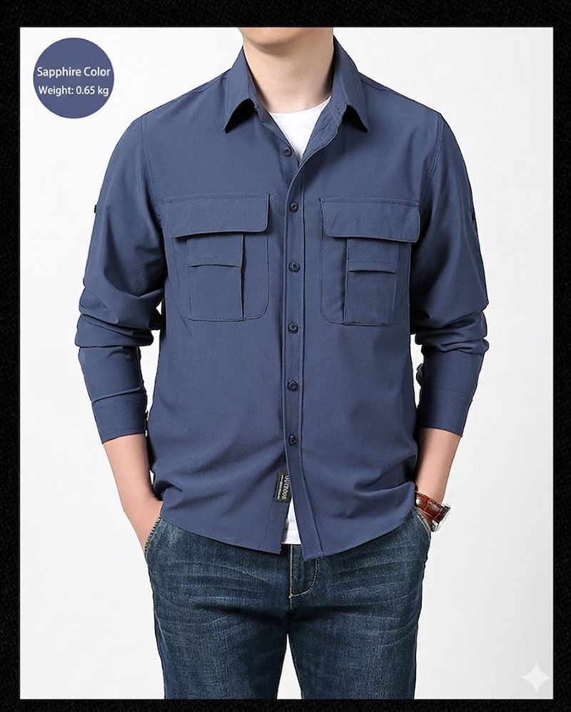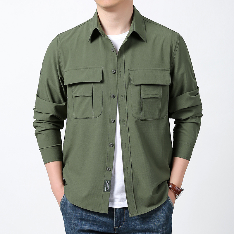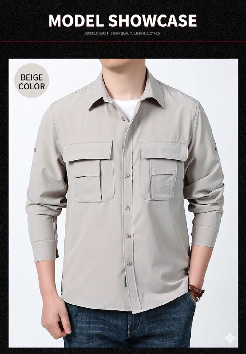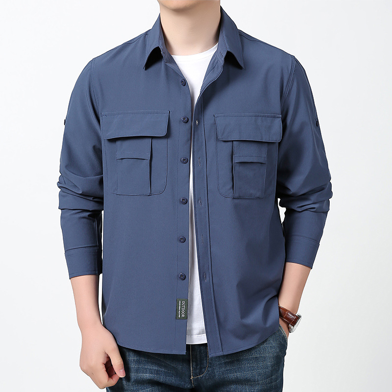 SHL20 is a lightweight long-sleeve utility shirt designed with a clean modern silhouette, quick-drying stretch fabric, and practical chest-pocket storage. With breathable construction, roll-up sleeve styling, and multiple versatile color options, it works well for daily wear, travel, light outdoor use, and casual workwear-inspired outfits.