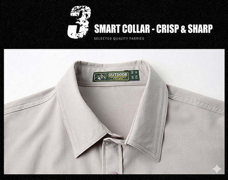SHL20 has a clean long-sleeve shirt profile with a structured collar, button-front placket, and balanced chest-pocket design. The overall shape feels sharper than a basic casual shirt while still staying easy to wear for everyday use. Its straight hem and tidy shoulder line give it a neat workwear-inspired look that also fits outdoor and travel styling.