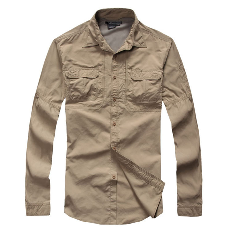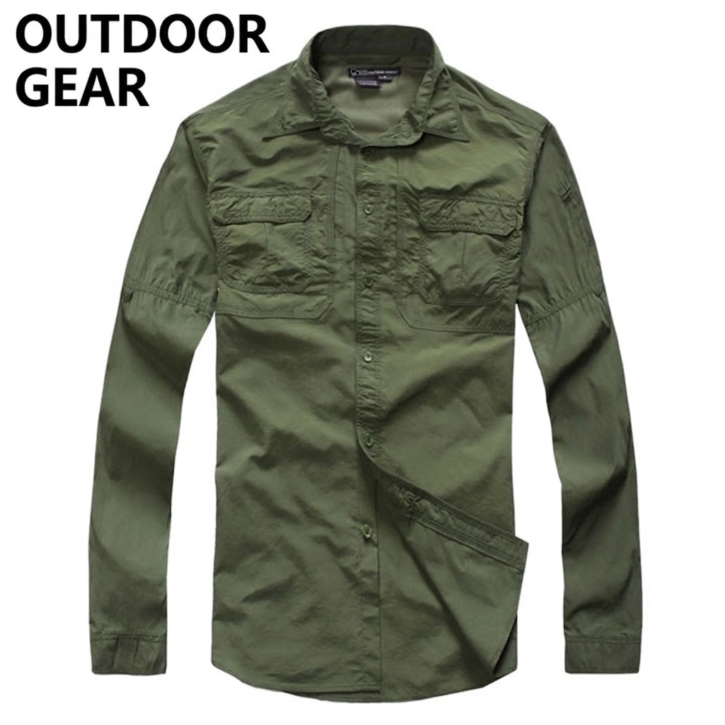 SHL22 Quick-Dry Military Style Long-Sleeve Shirt – Lightweight Outdoor Utility Shirt with Chest Pockets